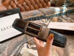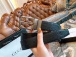 This Louis Vuitton black belt with silver square buckle is made of high-quality black leather with fine surface texture and soft and comfortable feel. The silver buckle is made with exquisite craftsmanship and is engraved with “Louis Vuitton”, highlighting the high-end quality of the brand’s co-branding.
