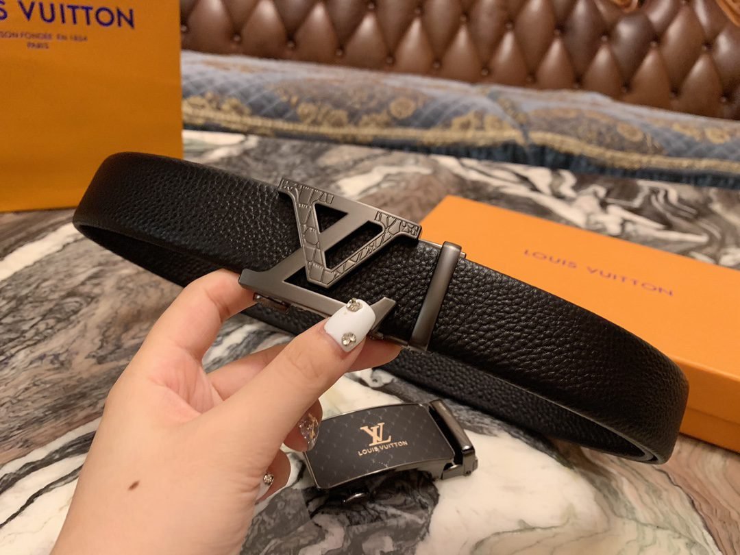 Home Belt LV belt Louis Vuitton silver V buckle black belt, simple and elegant, classic and fashionable
