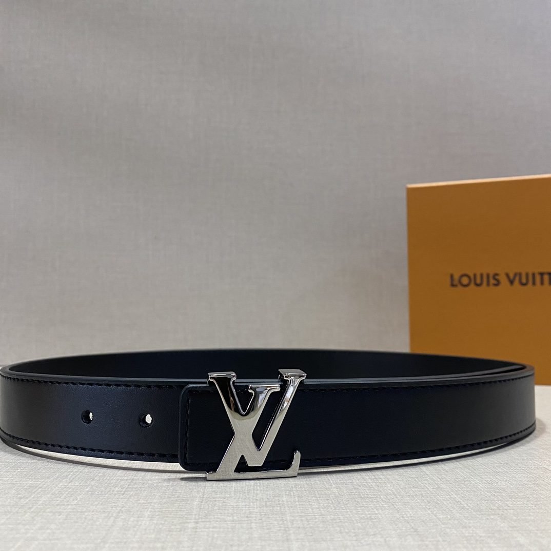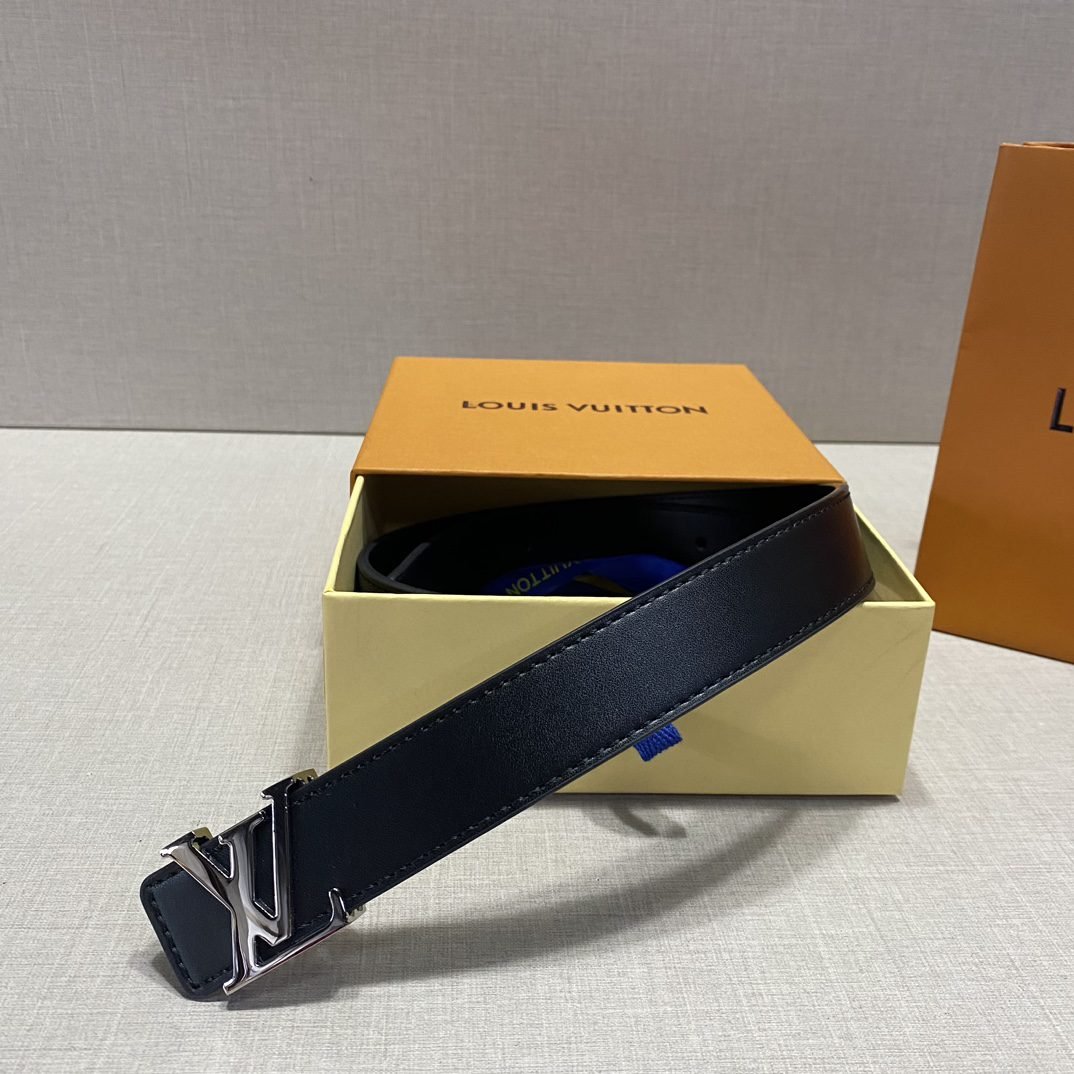 Home Belt LV belt Louis Vuitton silver V buckle black belt, simple and elegant, low-key luxury