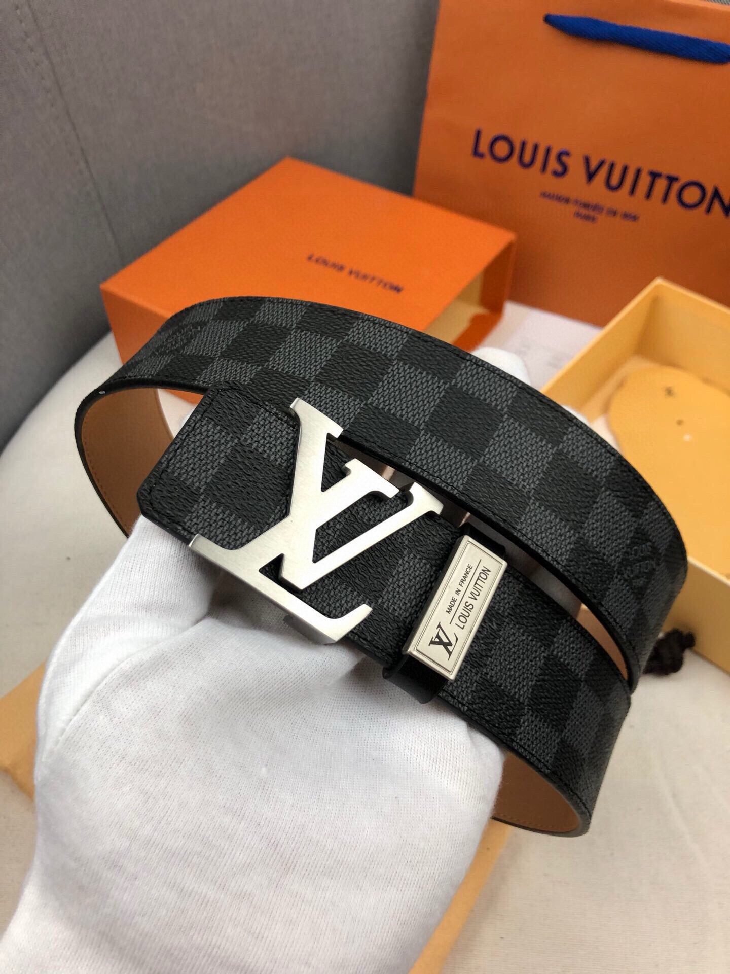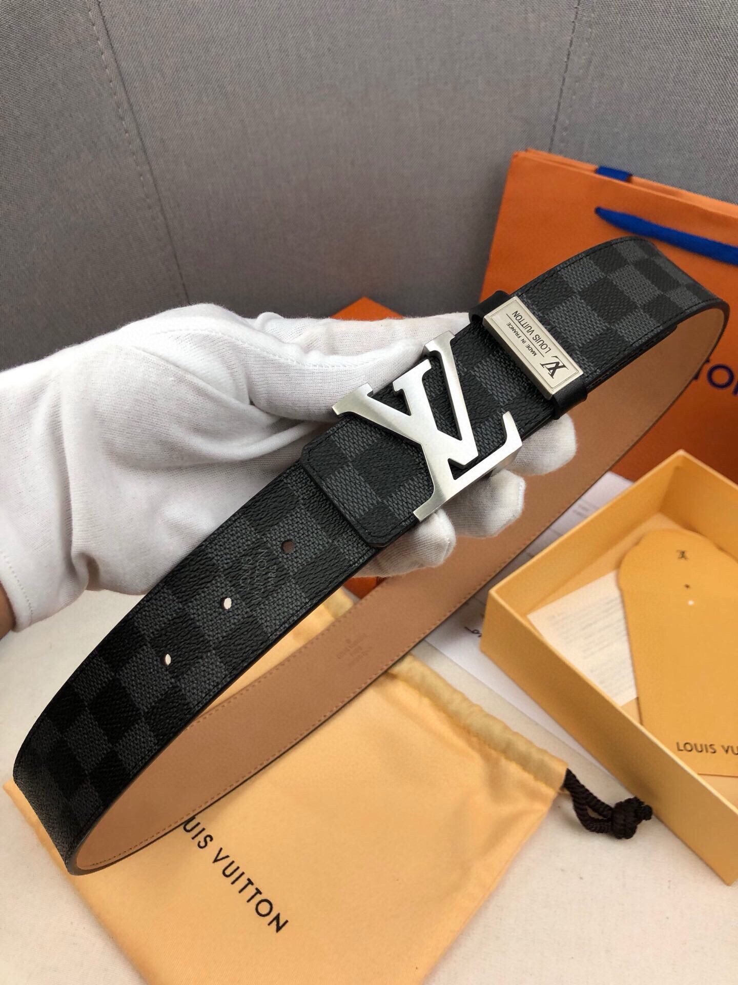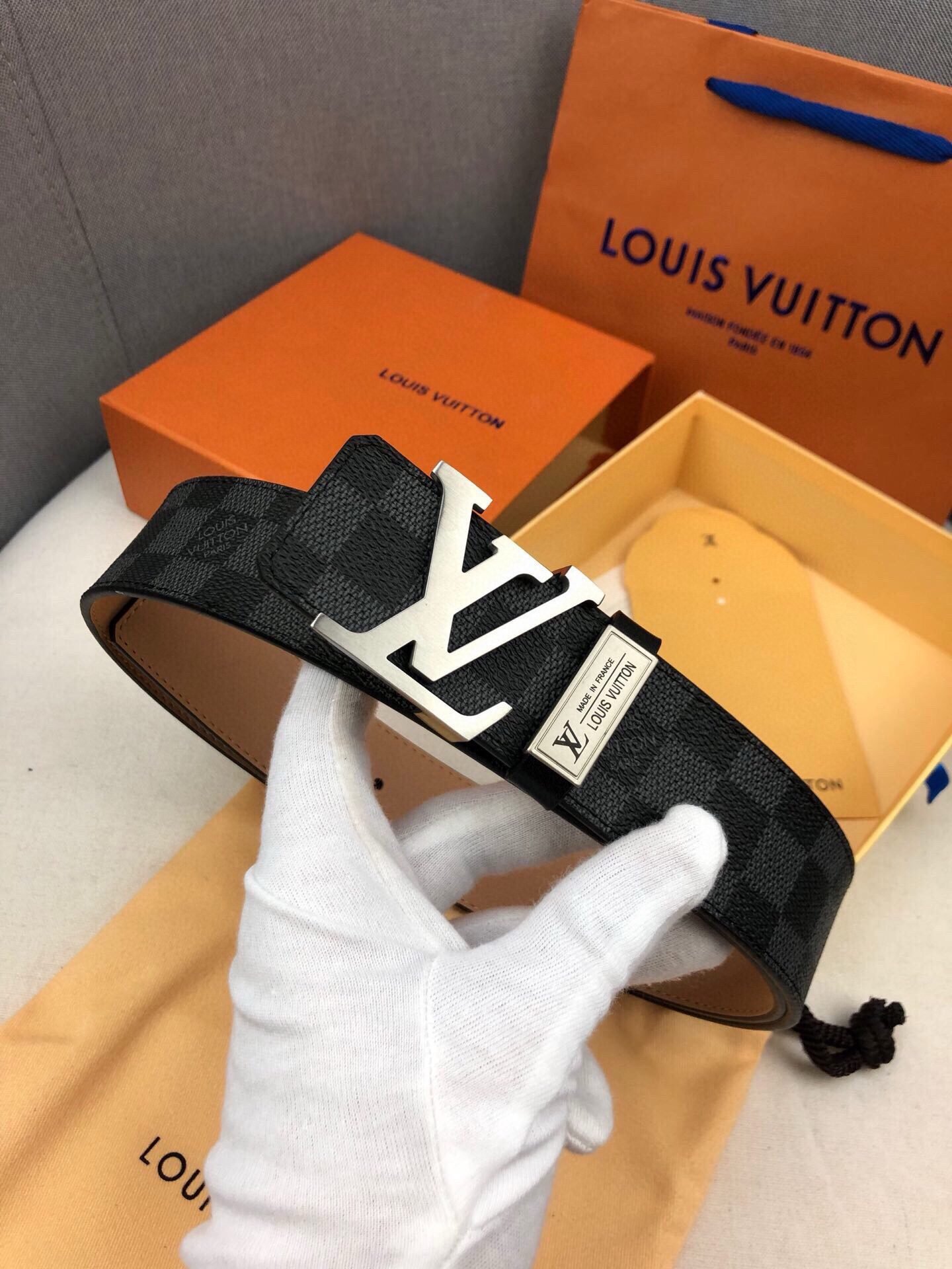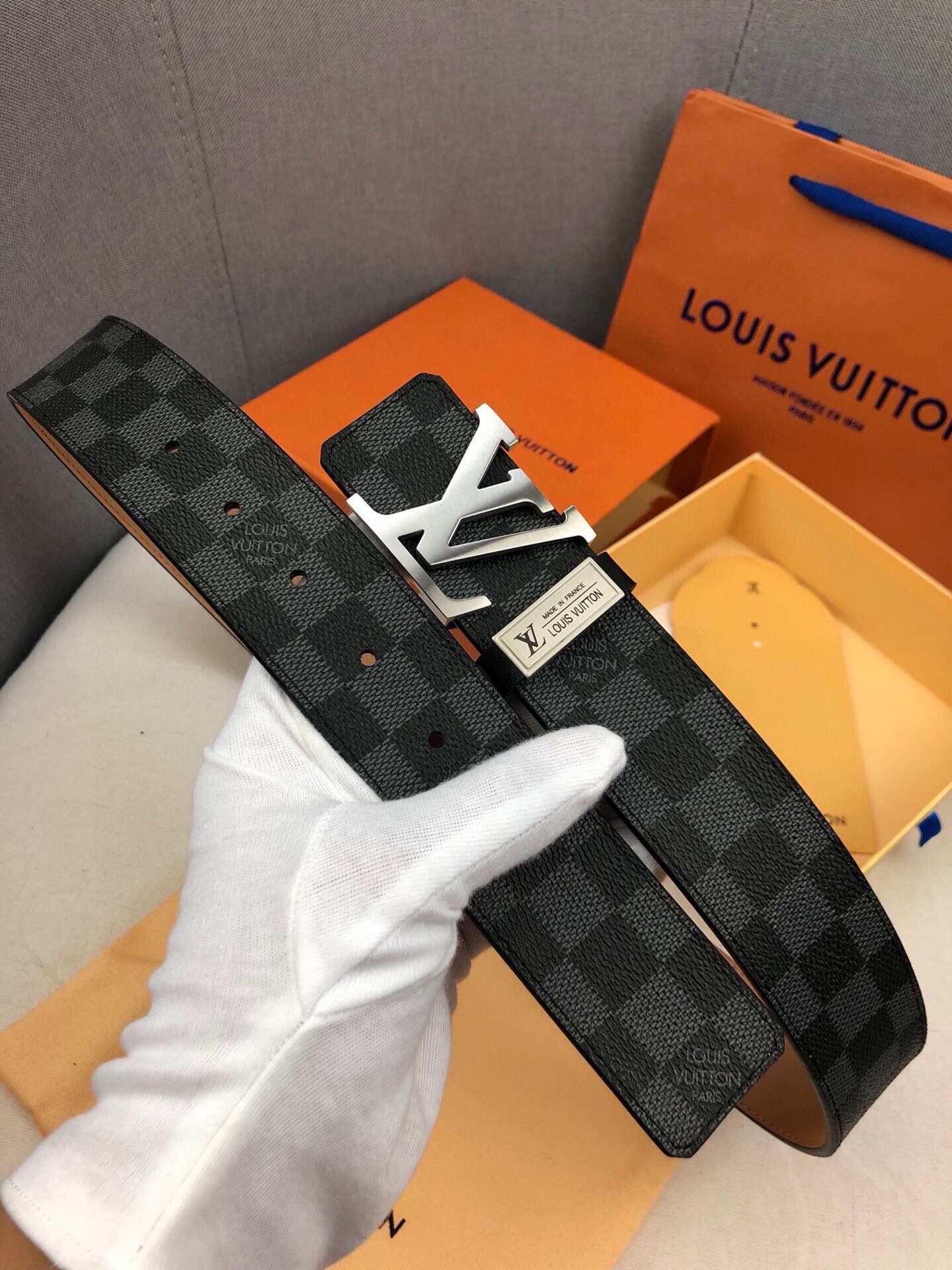 Home Belt LV belt Louis Vuitton silver V buckle black plaid belt, simple and elegant, low-key luxury