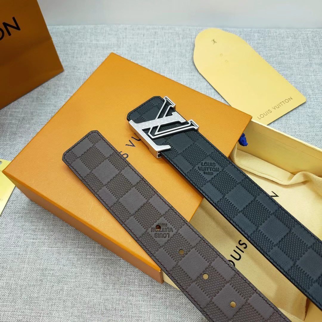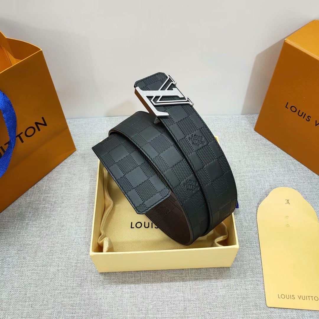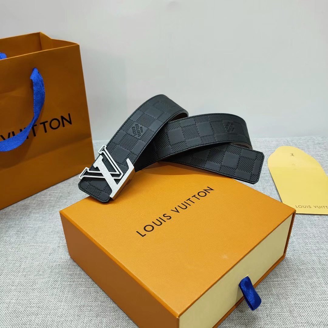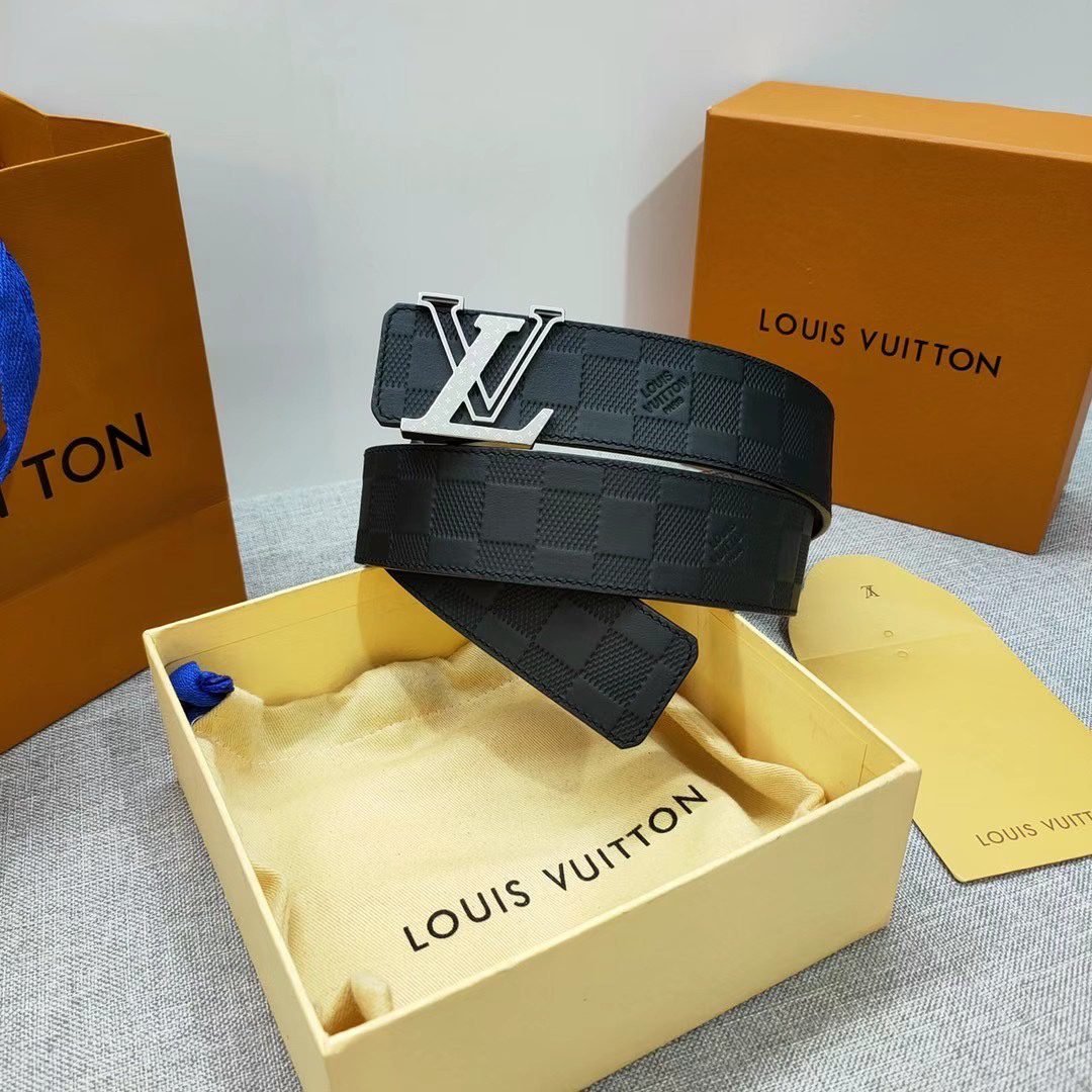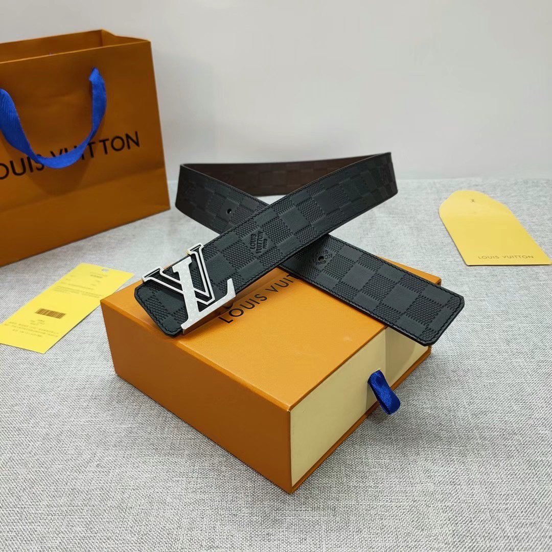 Home Belt LV belt Louis Vuitton silver V buckle black plaid belt, simple and elegant, low-key luxury
