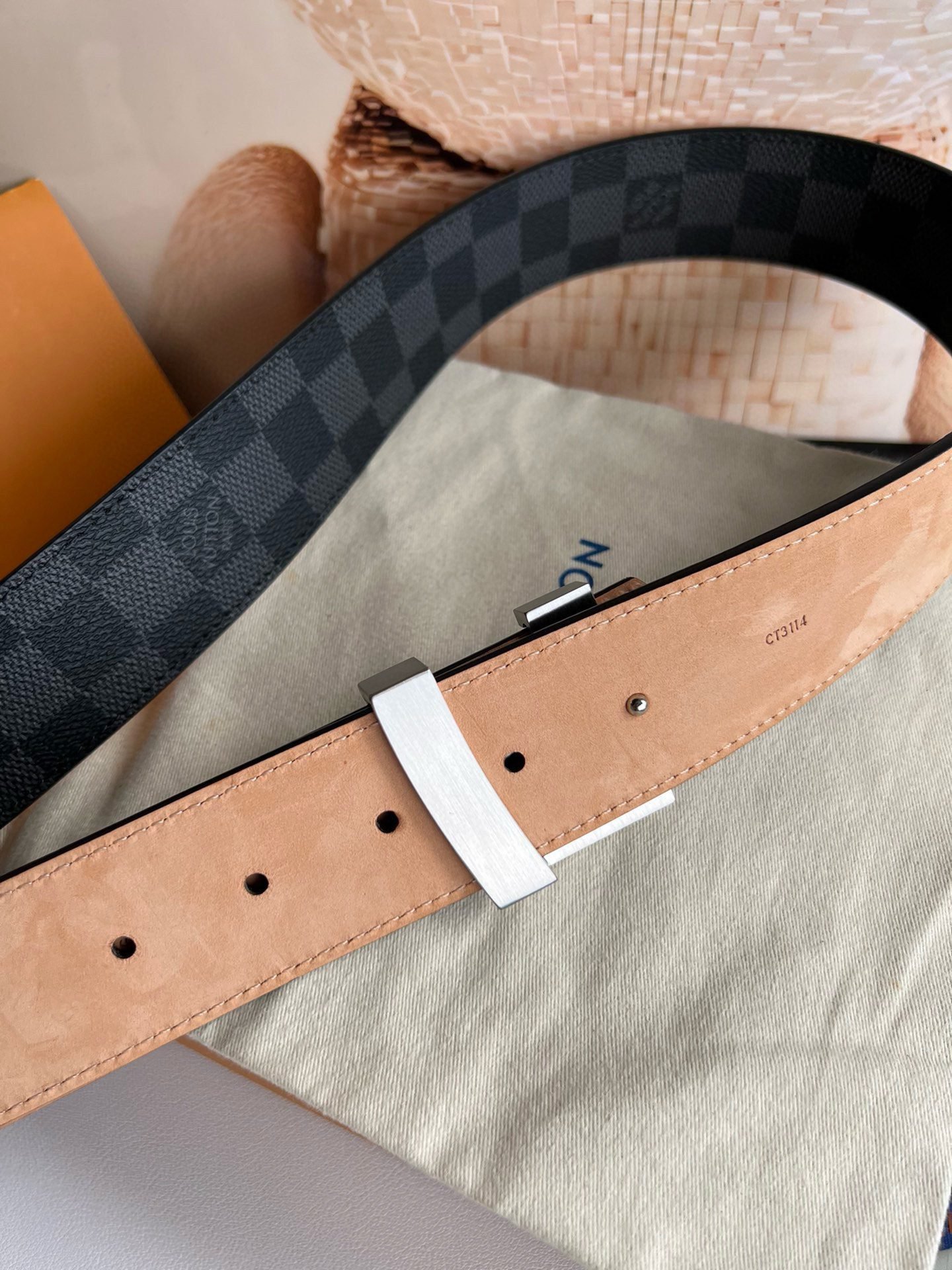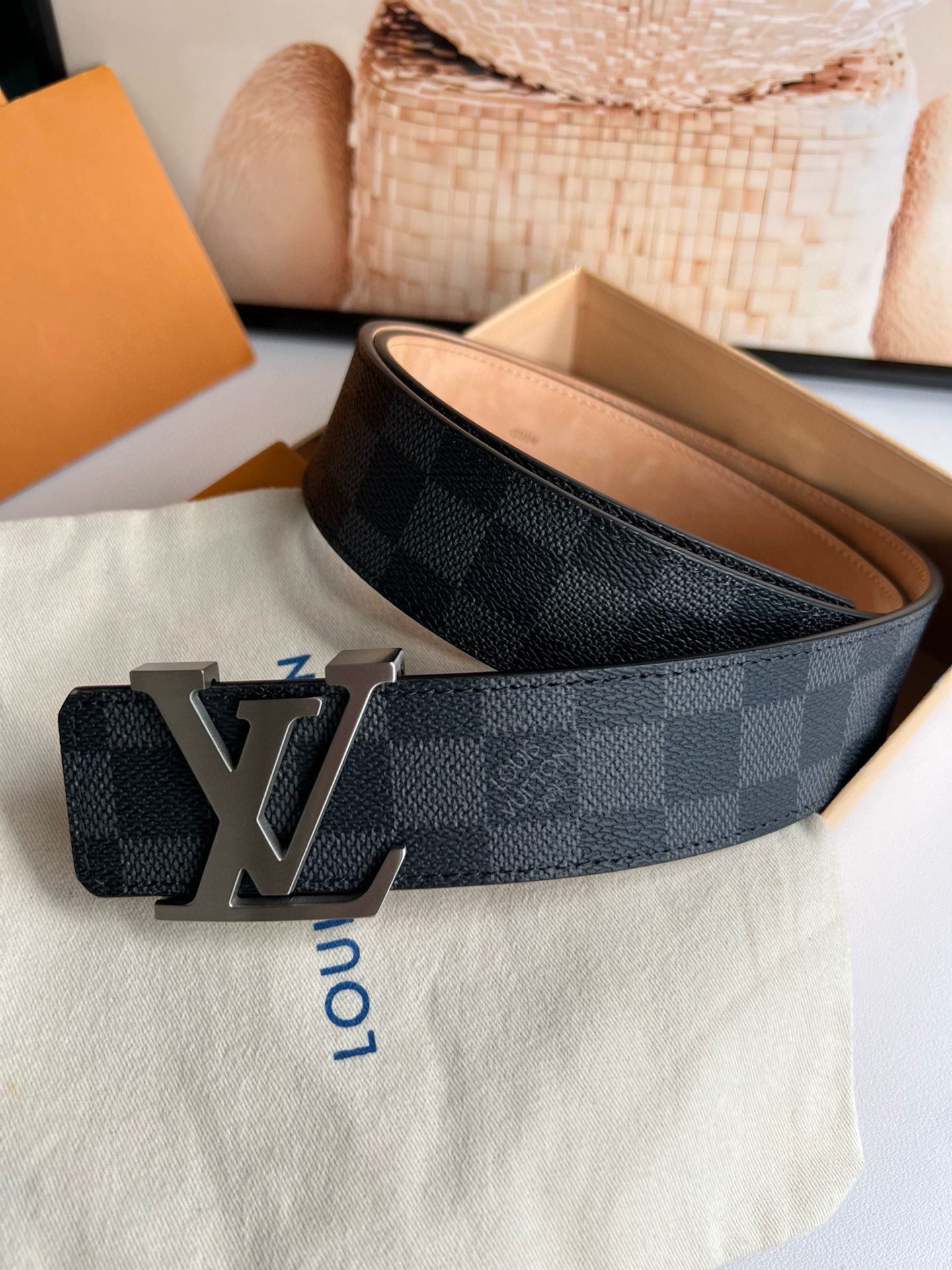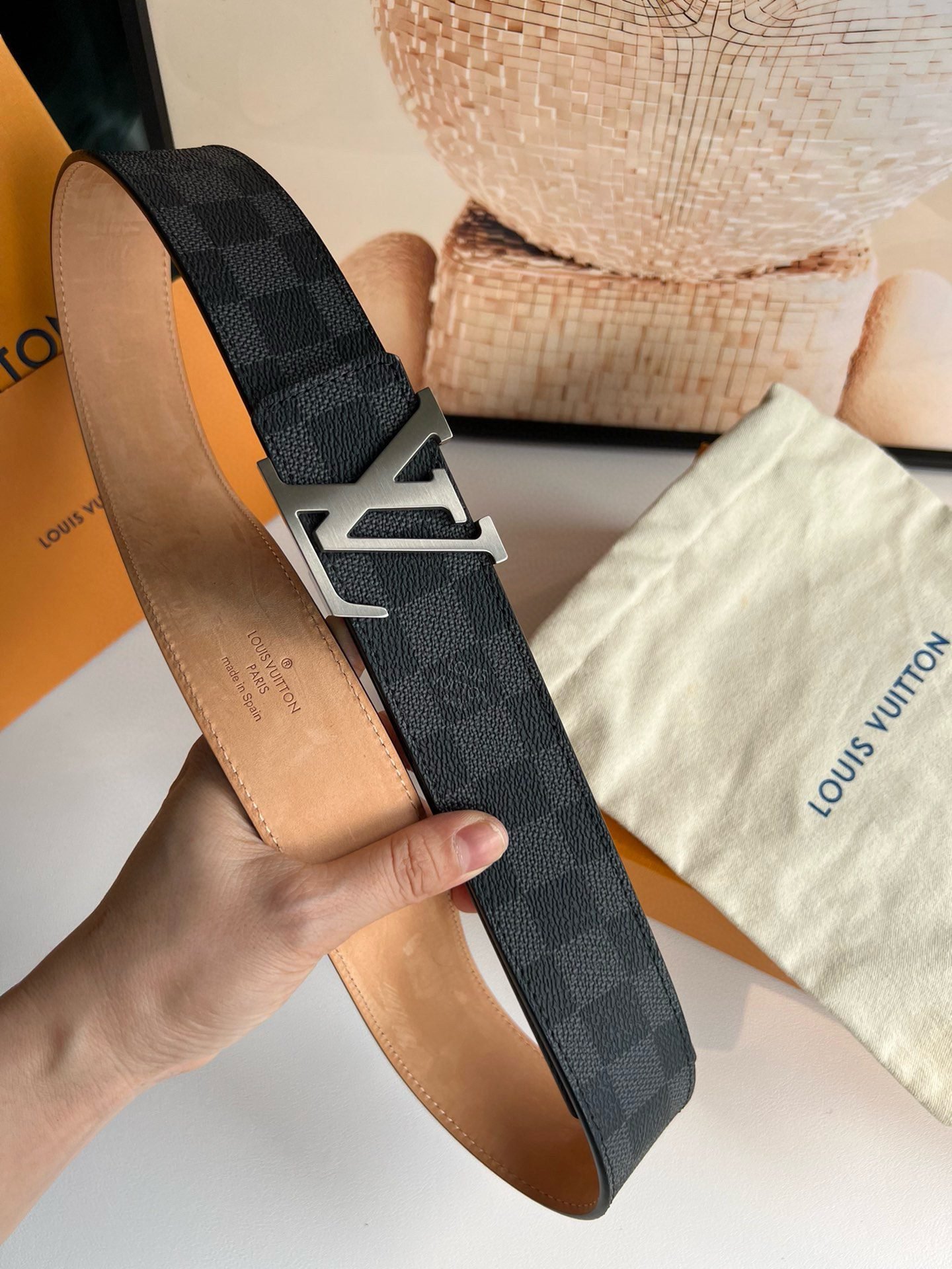 Home Belt LV belt Louis Vuitton silver V buckle black plaid belt, simple and elegant, noble and elegant