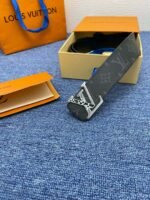 This Louis Vuitton silver V-buckle black textured belt has become a dazzling choice of fashion accessories with its excellent quality and unique design. The selected black leather is treated with a special process, showing fine texture and luster, soft and elastic to the touch. The belt buckle is inlaid with Louis Vuitton’s iconic silver “LV” pattern, which not only highlights the brand’s nobility and elegance, but also adds a low-key sense of luxury.