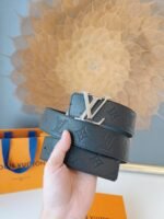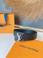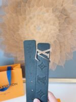 Louis Vuitton’s silver V-buckle black textured belt has become a shining star in the fashion industry with its unique craftsmanship and excellent quality. Made of high-quality leather material, the surface has a delicate luster and is soft and comfortable to the touch, ensuring that it will remain as good as new after being worn for a long time. The belt buckle adopts a classic silver LV design and is engraved with “LOUIS VUITTON”, highlighting the brand’s nobility and uniqueness.