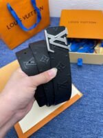 Louis Vuitton’s silver V-buckle black textured belt is made of top-quality leather, which is soft and elastic to the touch, showing a deep and low-key black charm. The belt buckle is made of exquisite silver metal and is engraved with the brand’s iconic “LV” letter pattern, highlighting the brand’s unique noble temperament.