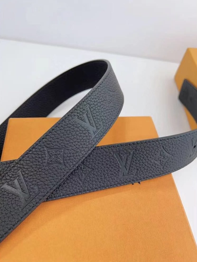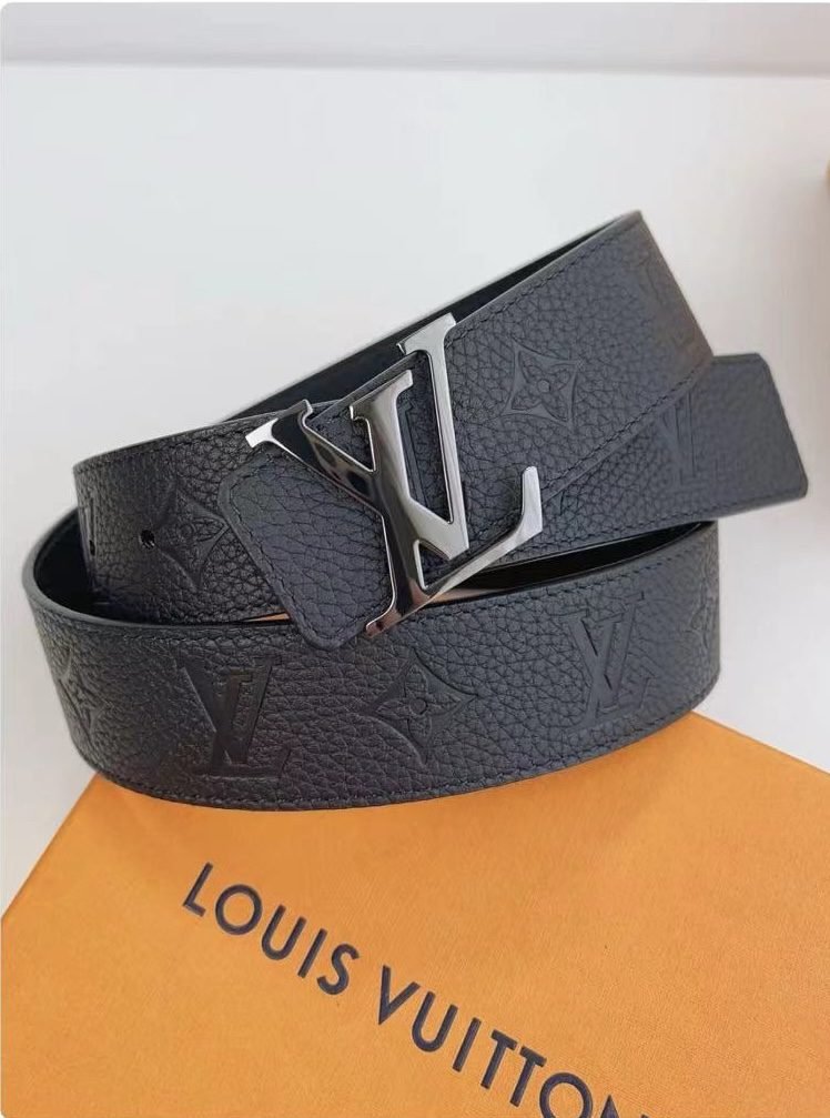 This Louis Vuitton silver V-buckle black textured belt has become a shining star in the fashion industry with its unique charm and excellent quality. Selected black leather material has a warm luster and soft touch, showing nobility and elegance. The metal “LV” logo buckle has a simple yet exquisite design, highlighting the brand’s unique charm and luxury.