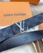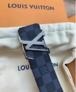 This Louis Vuitton silver V buckle dark blue plaid belt shows the unique charm of the Louis Vuitton brand with its unique plaid pattern design. The alternating color scheme of dark gray and light gray is elegant yet stable, highlighting the wearer’s taste and personality.