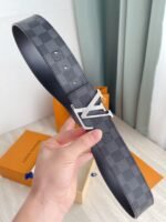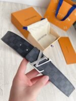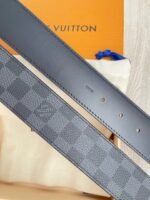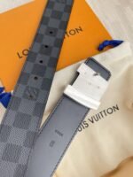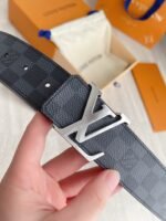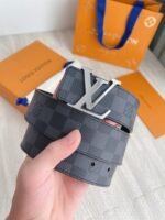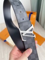 This Louis Vuitton silver V-buckle black checkered belt demonstrates the brand’s extraordinary taste and craftsmanship with its elegant and unique design. The belt is made of top-grade genuine leather, polished with exquisite craftsmanship, showing a deep black luster, soft and elastic to the touch. The silver “V” buckle is the finishing touch of the entire piece. It not only adds a sense of fashion to the belt, but also represents the brand’s iconic and noble temperament.