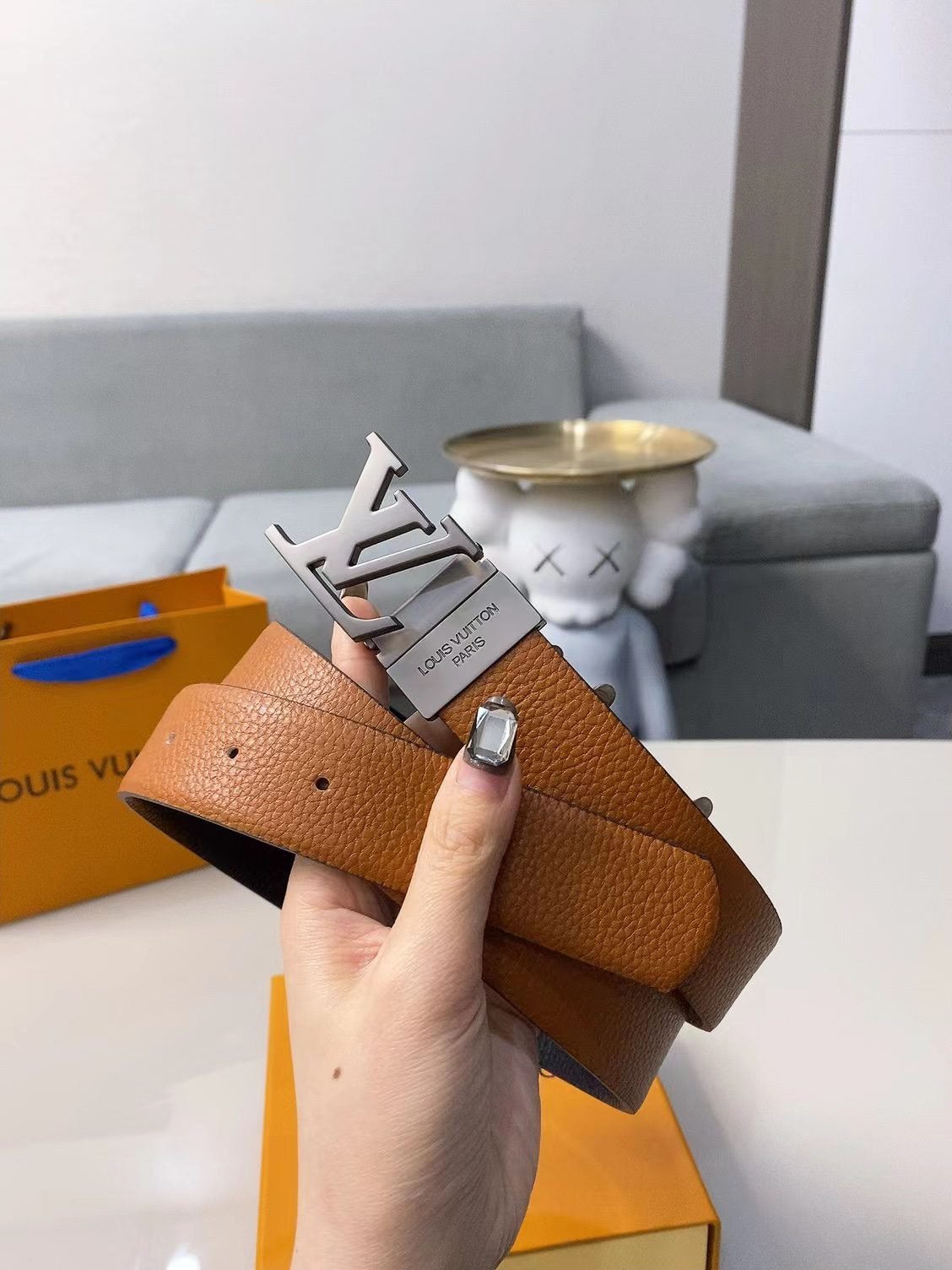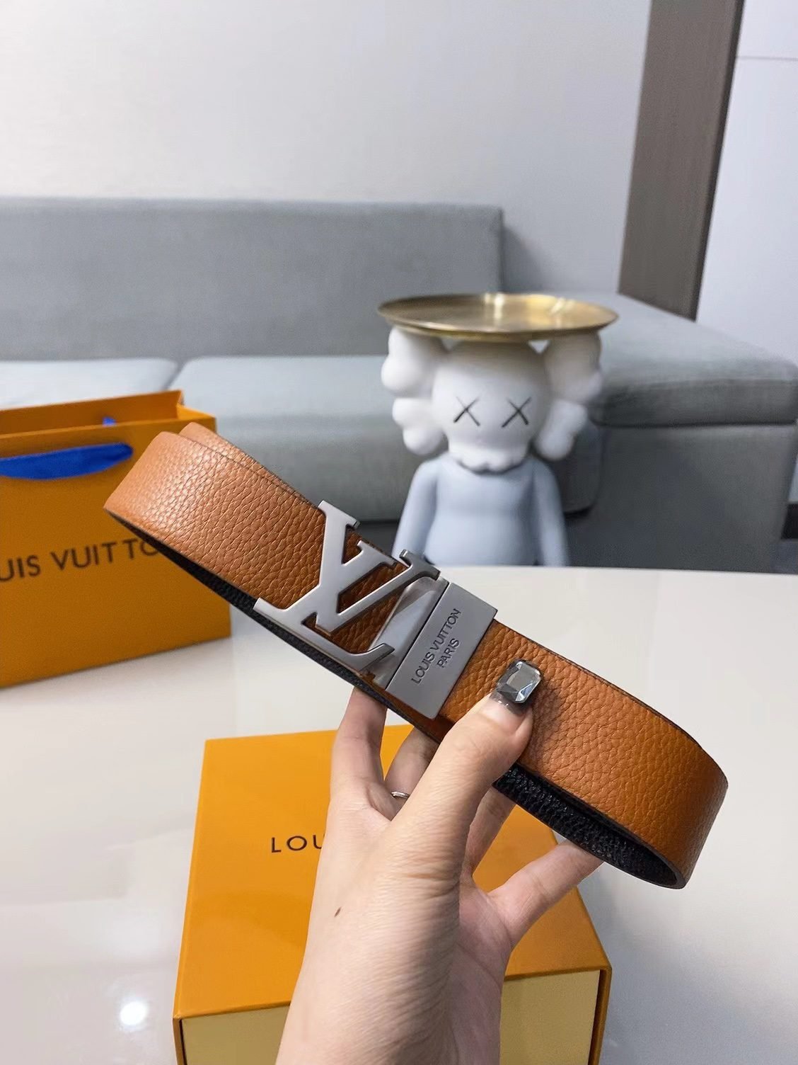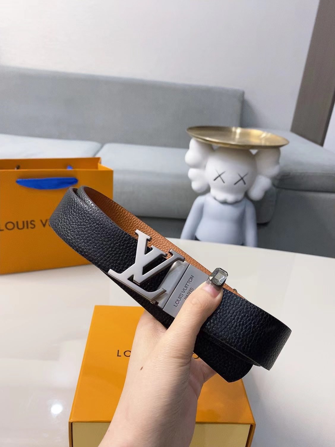 Louis Vuitton’s silver V-neck double-sided belt shows extraordinary fashion taste with its unique two-color design. The classic combination of black and brown not only shows calmness, but also adds a touch of fashion and dynamism. Selected from the finest leather, it feels delicate, flexible and wear-resistant, and retains its perfect texture over time. The metal fastener is engraved with a striking “v” logo, highlighting the brand’s nobility and luxury. The belt can be used on both sides.