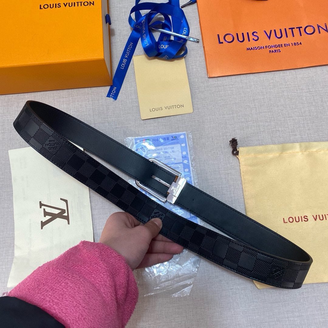 Louis Vuitton square buckle black plaid belt, with its unique design and excellent quality, demonstrates unparalleled fashion charm. Selected high-quality black leather, the surface is carefully polished, showing a delicate luster and texture, soft and elastic to the touch. The belt buckle is made of high-quality metal with long-lasting luster, which contrasts sharply with the black leather, making it even more noble and elegant.