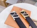 This Louis Vuitton square buckle black belt is the perfect blend of quality and style. Selected high-quality black leather is carefully processed to present a deep and lustrous texture, which is soft and delicate to the touch. The belt buckle adopts a delicate metal design and is inlaid with the brand’s iconic “LV” logo, demonstrating unparalleled nobility and elegance.