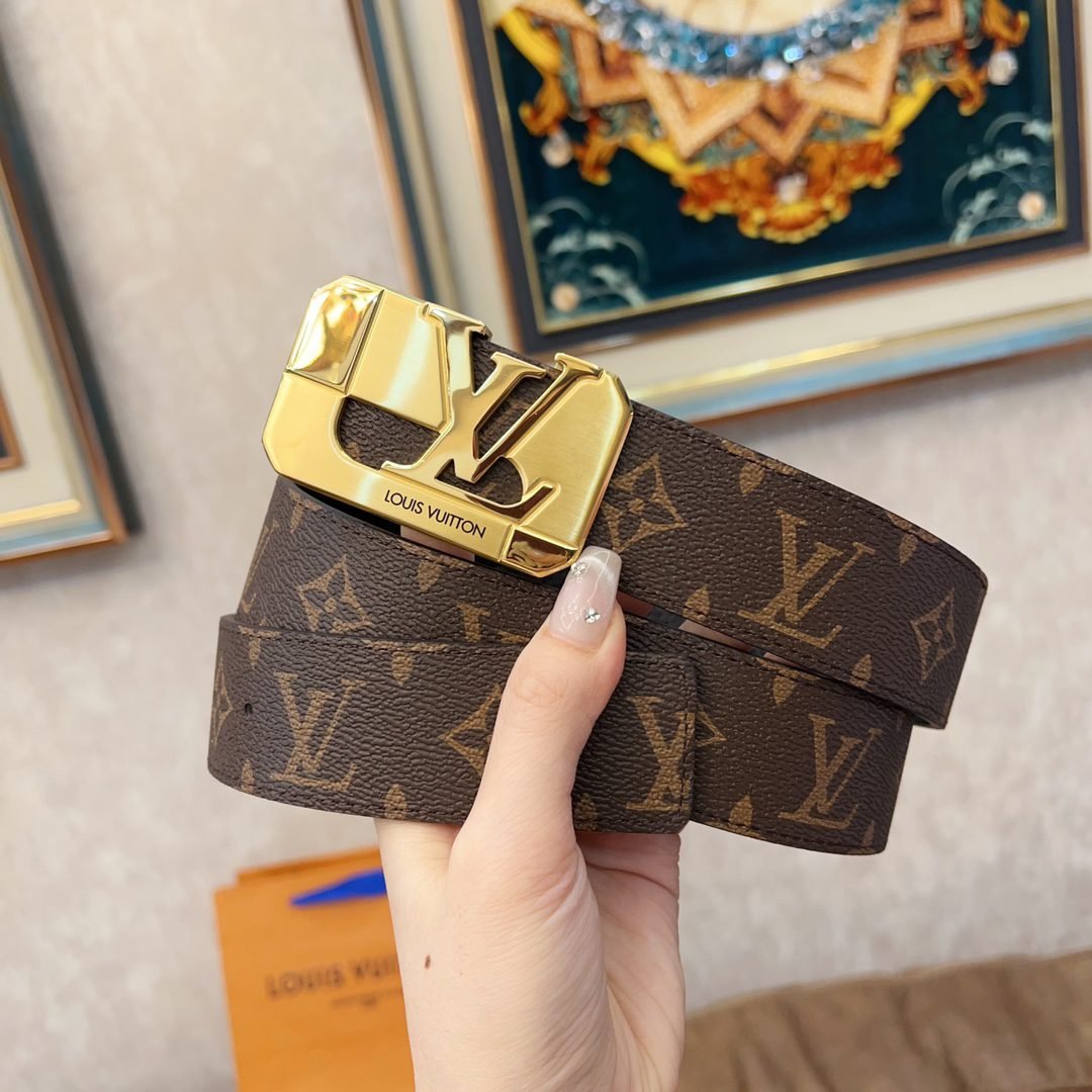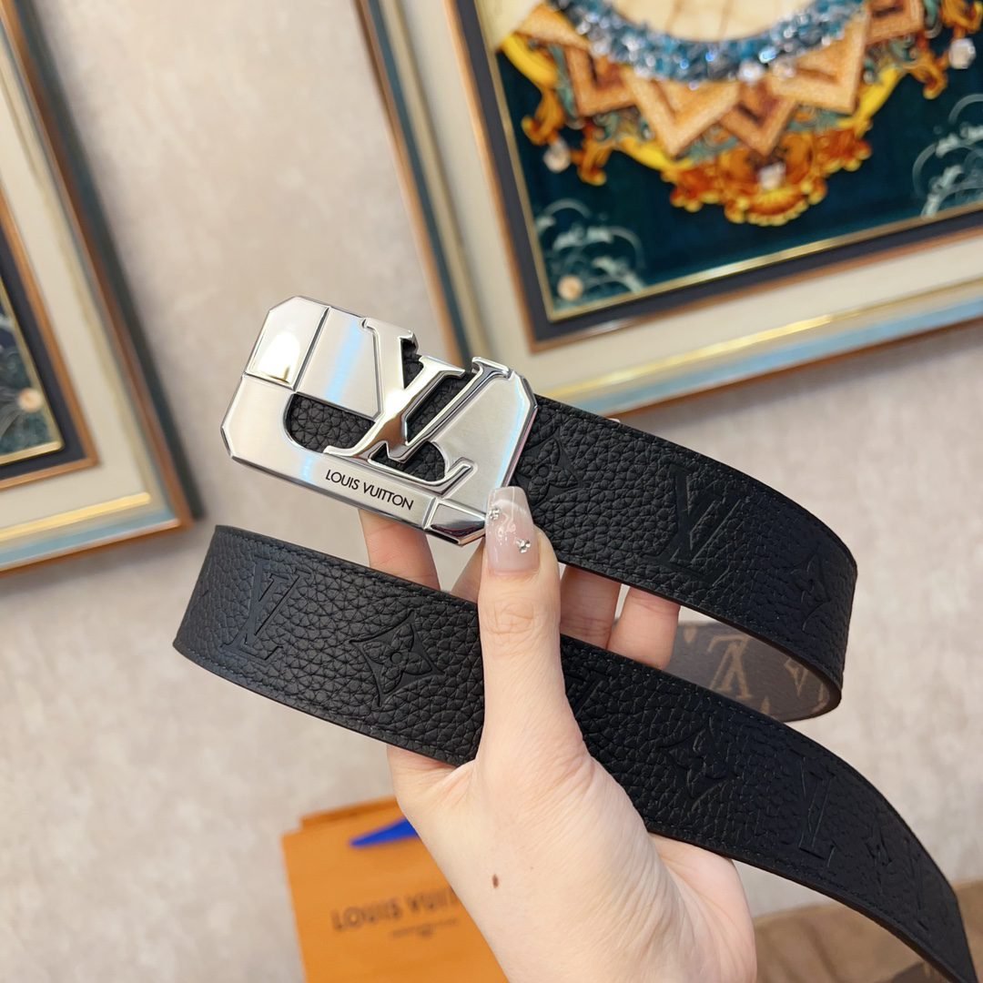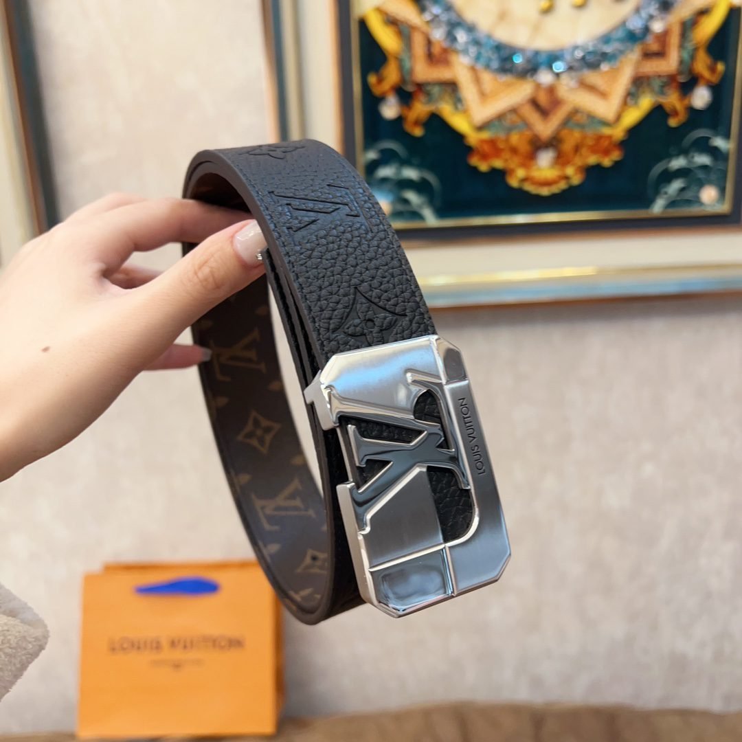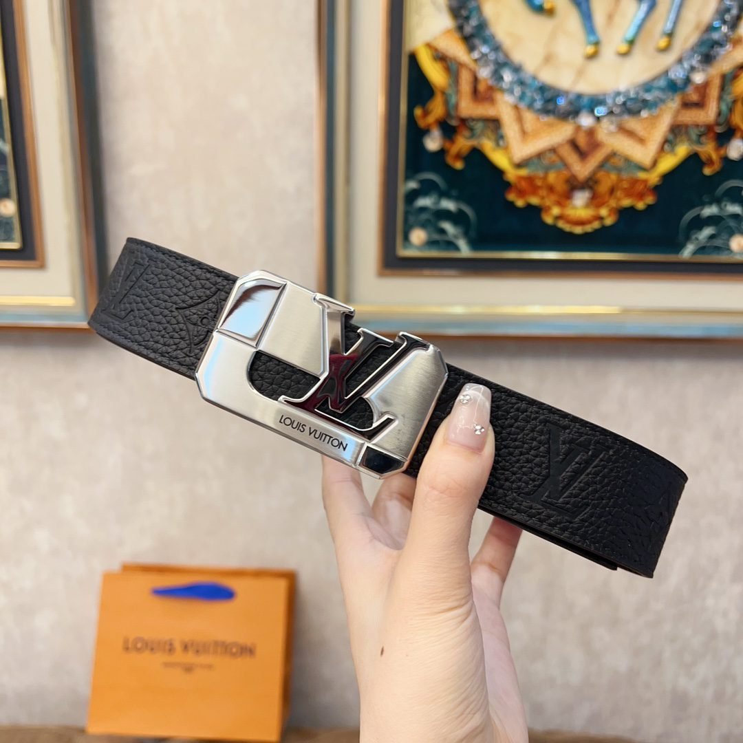 This Louis Vuitton square buckle textured belt cleverly combines the brand’s traditional elements with modern design. The belt is made of top-quality leather, which has a delicate touch and excellent durability. The metal “LV” logo fastener shines with a low-key and luxurious luster, highlighting the wearer’s distinguished status.