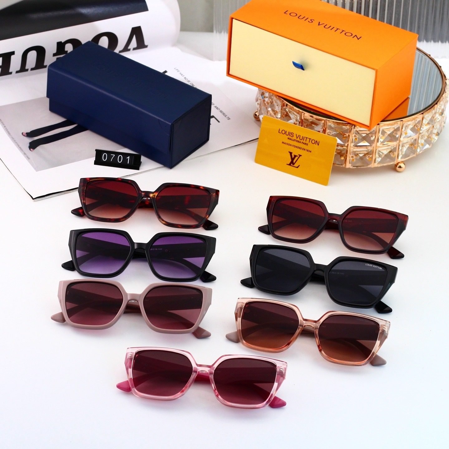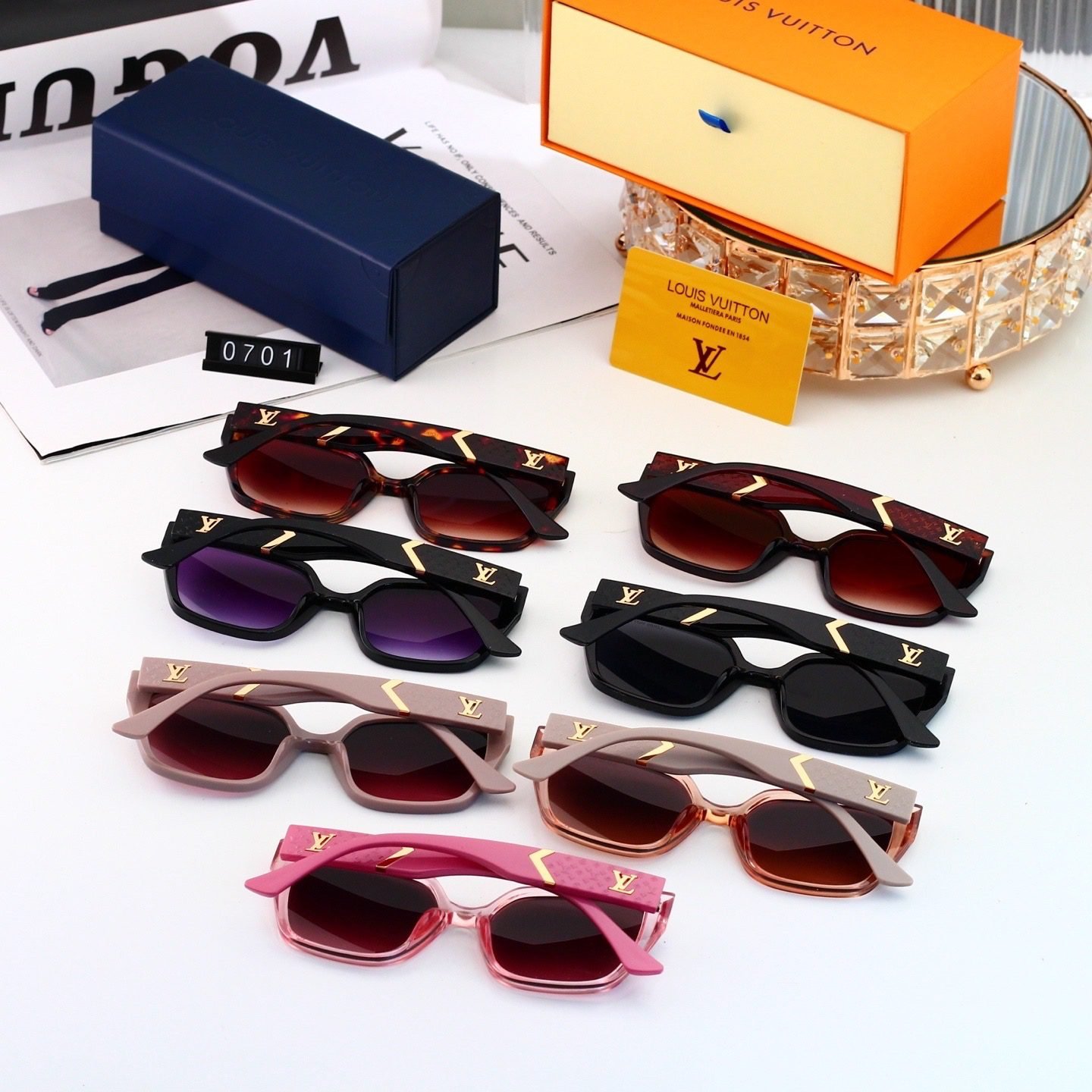 Elevate your accessory collection with Louis Vuitton’s square sunglasses (Model 0701). Featuring a range of stylish options—from classic tortoiseshell and gradient – tinted red lenses to designs in purple, black, pink, and brown hues—these sunglasses blend a chic square silhouette with the brand’s signature luxury.