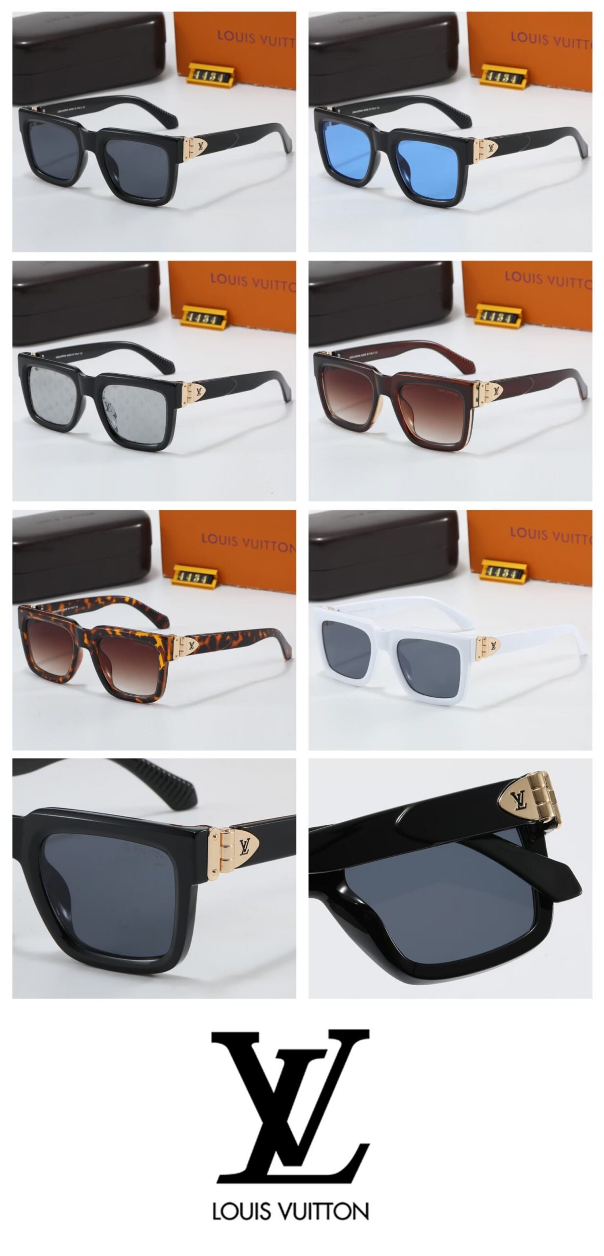 Elevate your accessory collection with Louis Vuitton’s square sunglasses. Showcasing a range of elegant styles, from classic black and blue – lensed designs to tortoiseshell and sleek white frames, these sunglasses blend a chic square frame with the brand’s iconic luxury, highlighted by signature gold – toned hardware with the LV logo.