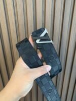 This Louis Vuitton two-tone buckle check belt highlights the brand’s extraordinary charm with its exquisite and elegant design and impeccable craftsmanship. The belt is made of high-quality leather, with soft leather and warm color, showing low-key luxury. The buckles and fasteners are made of metal and are engraved with the brand’s iconic “LOUIS VUITTON”, showing their distinguished status.