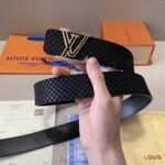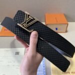 Home Belt LV belt Louis Vuitton V-buckle black checkered belt, simple and elegant, luxurious and low-key