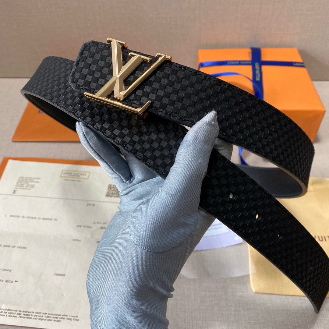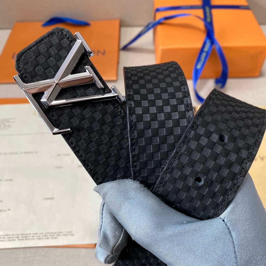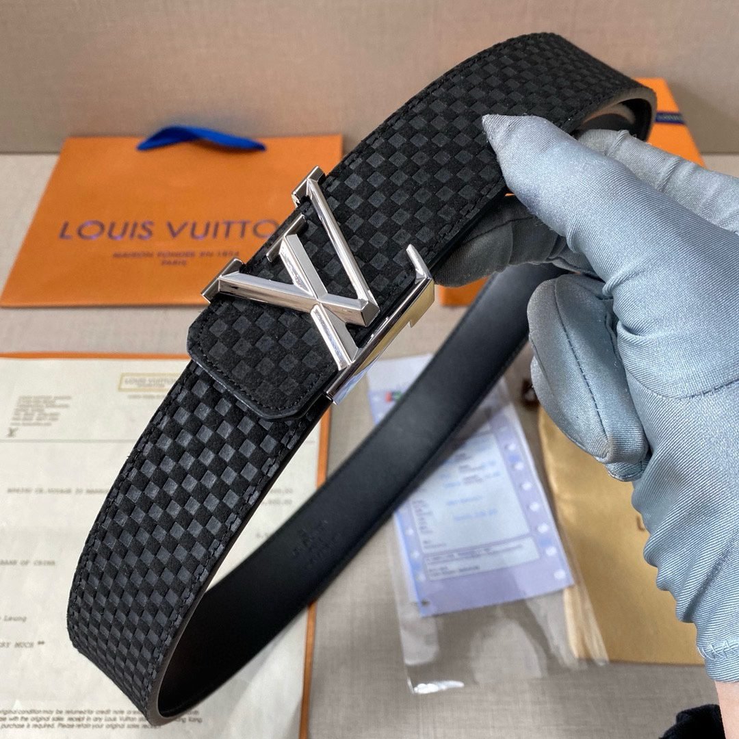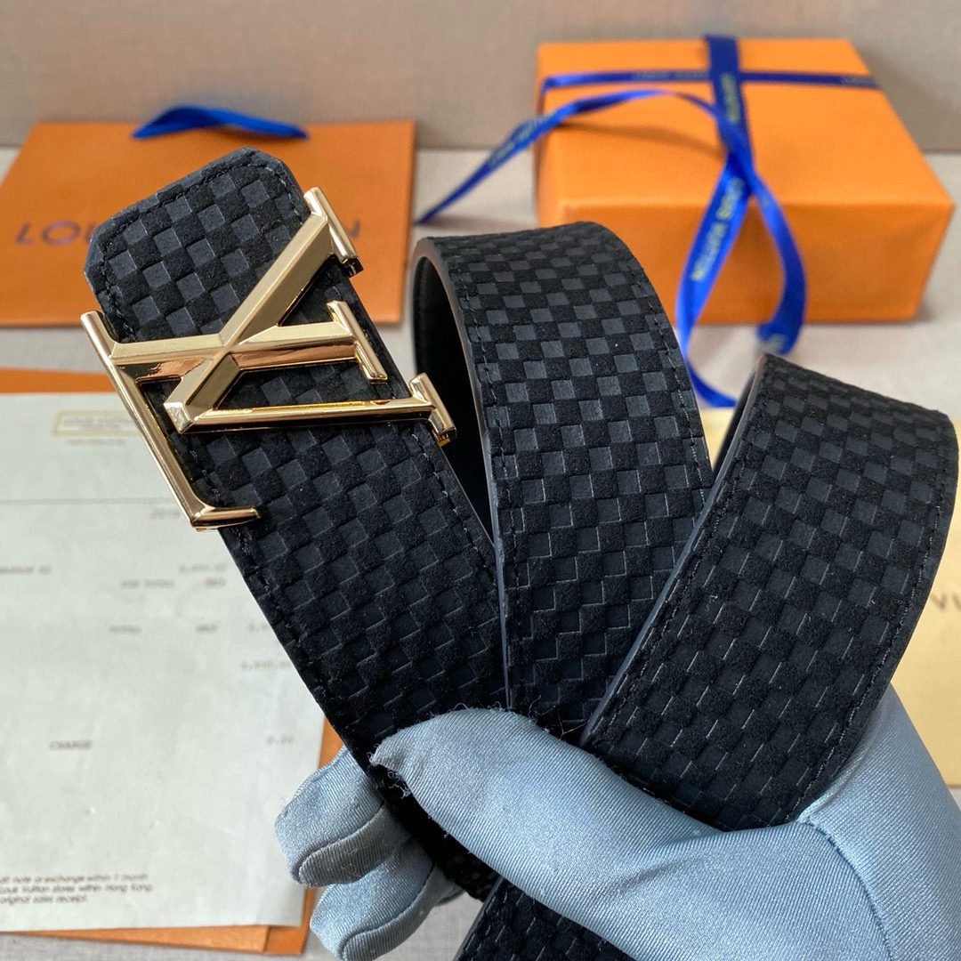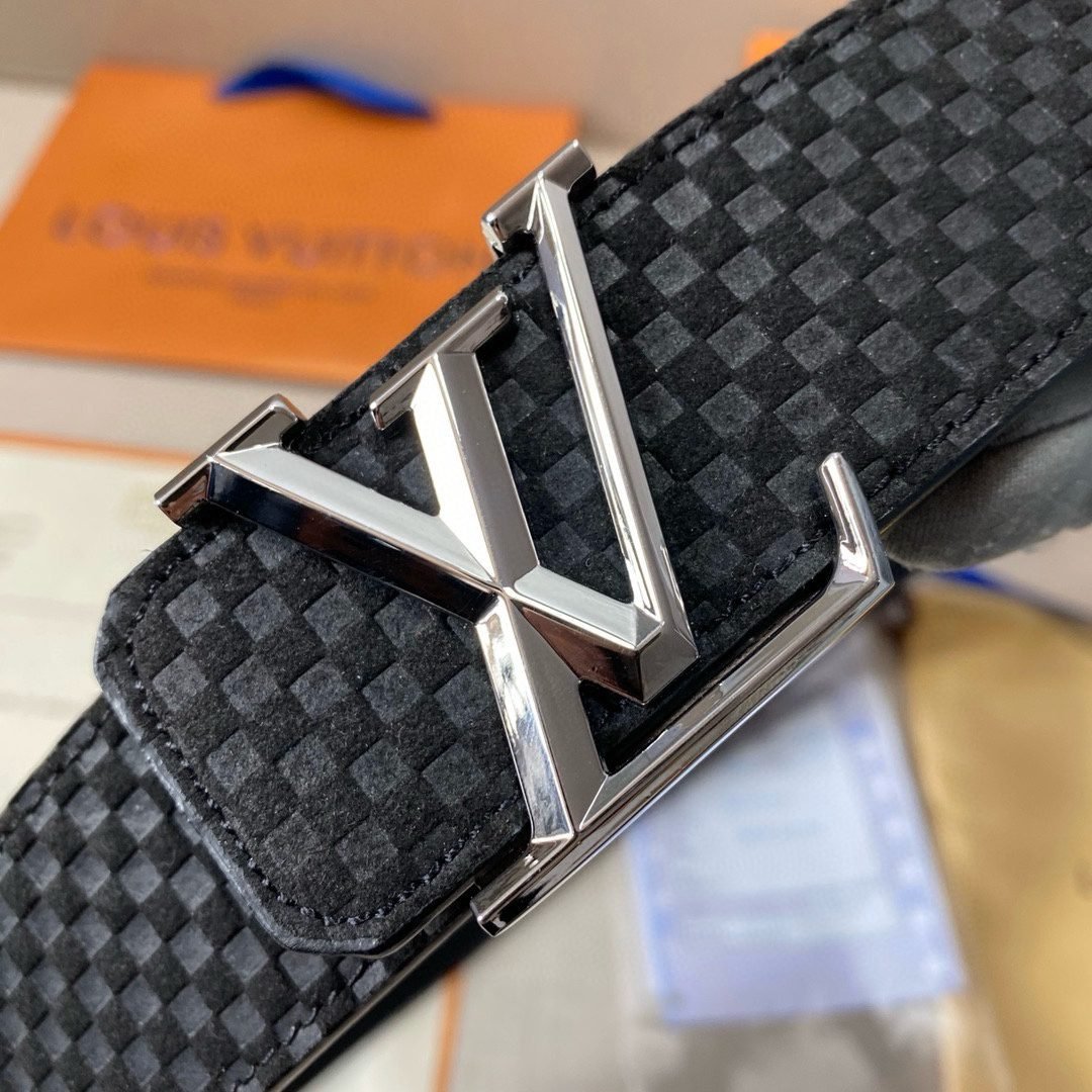 Home Belt LV belt Louis Vuitton V-buckle black plaid belt, simple and elegant, low-key luxury