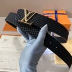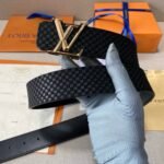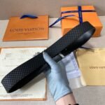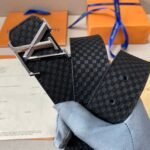 Louis Vuitton V-buckle black plaid belt, with its low-key and luxurious design style, demonstrates unparalleled taste and style. Selected high-quality leather material and processed with fine craftsmanship, the surface presents a silky touch and delicate luster. The metal “LV” logo buckle on the belt is a symbol of the brand’s identity, highlighting the wearer’s dignity and extraordinaryness.