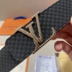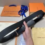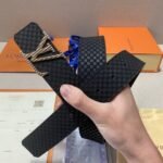 This Louis Vuitton V-buckle black plaid belt, with its unique plaid and metal buckle design, demonstrates extraordinary fashion taste and excellent quality. The belt is carefully woven from high-quality materials, with a fine and layered texture and a soft and comfortable feel. The buckle is made of high-quality metal with long-lasting luster, which contrasts sharply with the black belt, showing the brand’s unique charm.