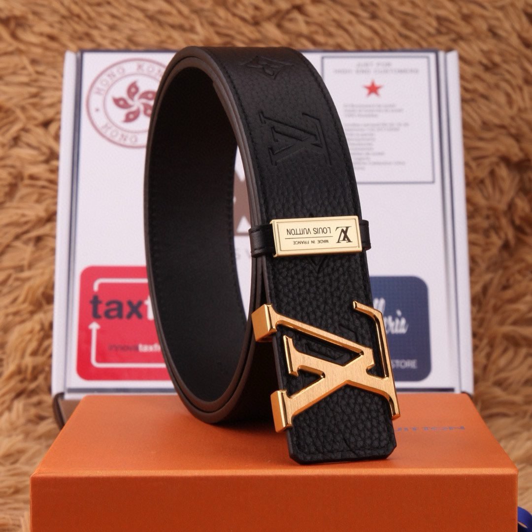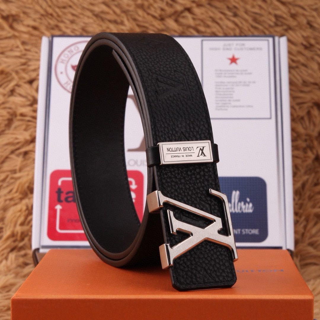 Louis Vuitton V-buckle black pattern belt combines the brand’s consistent elegance and fashion sense. The top-grade black leather is selected, soft and elastic to the touch, and paired with the classic V-shaped texture, highlighting the brand’s unique charm. The belt buckle is made of strong and durable metal material with an exquisite “LV” logo, which not only shows the brand’s distinguished identity, but also adds a sense of fashion.