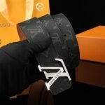 This Louis Vuitton V-buckle black textured belt highlights the brand’s unique charm with its simple yet elegant design. The belt is made of high-quality leather, which feels soft and delicate while combining durability and comfort. As a symbol of the brand, the metal “LV” logo buckle not only demonstrates the noble quality of the brand, but also adds a sense of fashion to the belt.