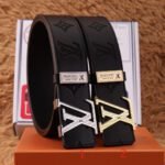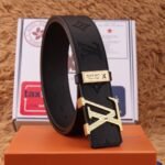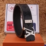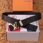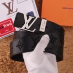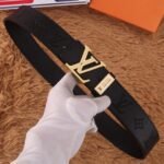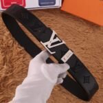 The Louis Vuitton V-buckle black textured belt, with its elegant black color and unique metal buckle, demonstrates unparalleled fashion charm. The belt is made of selected first-layer cowhide, which has been treated with fine craftsmanship. It feels soft and elastic, ensuring the comfort of long-term wearing. The buckle is engraved with Louis Vuitton’s classic “LV” logo, symbolizing the wearer’s unique taste and distinguished status.