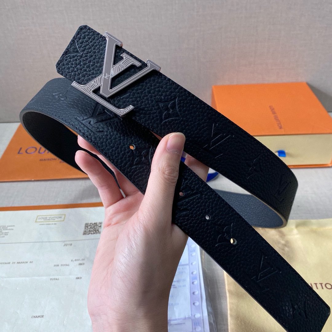 Home Belt LV belt Louis Vuitton V-buckle black textured belt, simple and elegant, low-key luxury