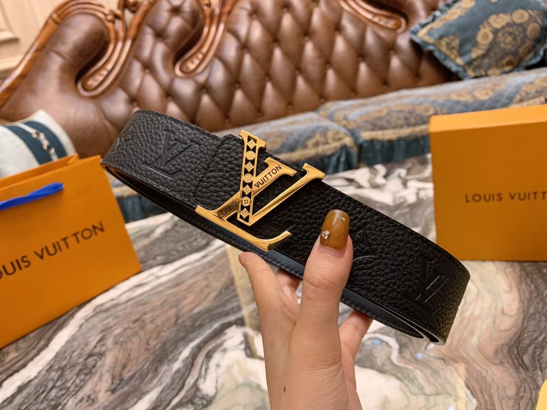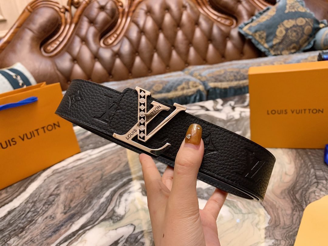 The Louis Vuitton V-buckle black textured belt is based on selected black leather, showing unparalleled texture and luster. The belt buckle is made of metal and is engraved with the brand’s iconic “LOUIS VUITTON” and a delicate V-shaped logo, highlighting the brand’s luxury and sophistication.