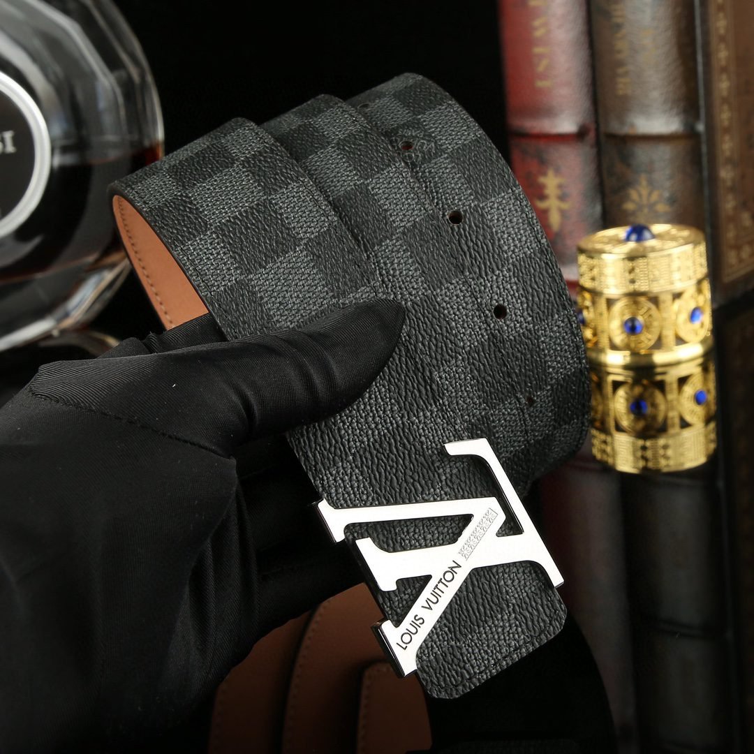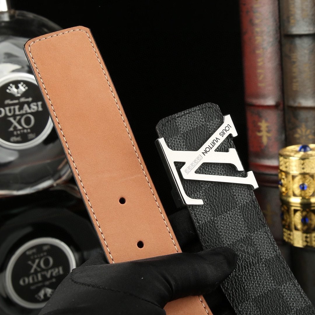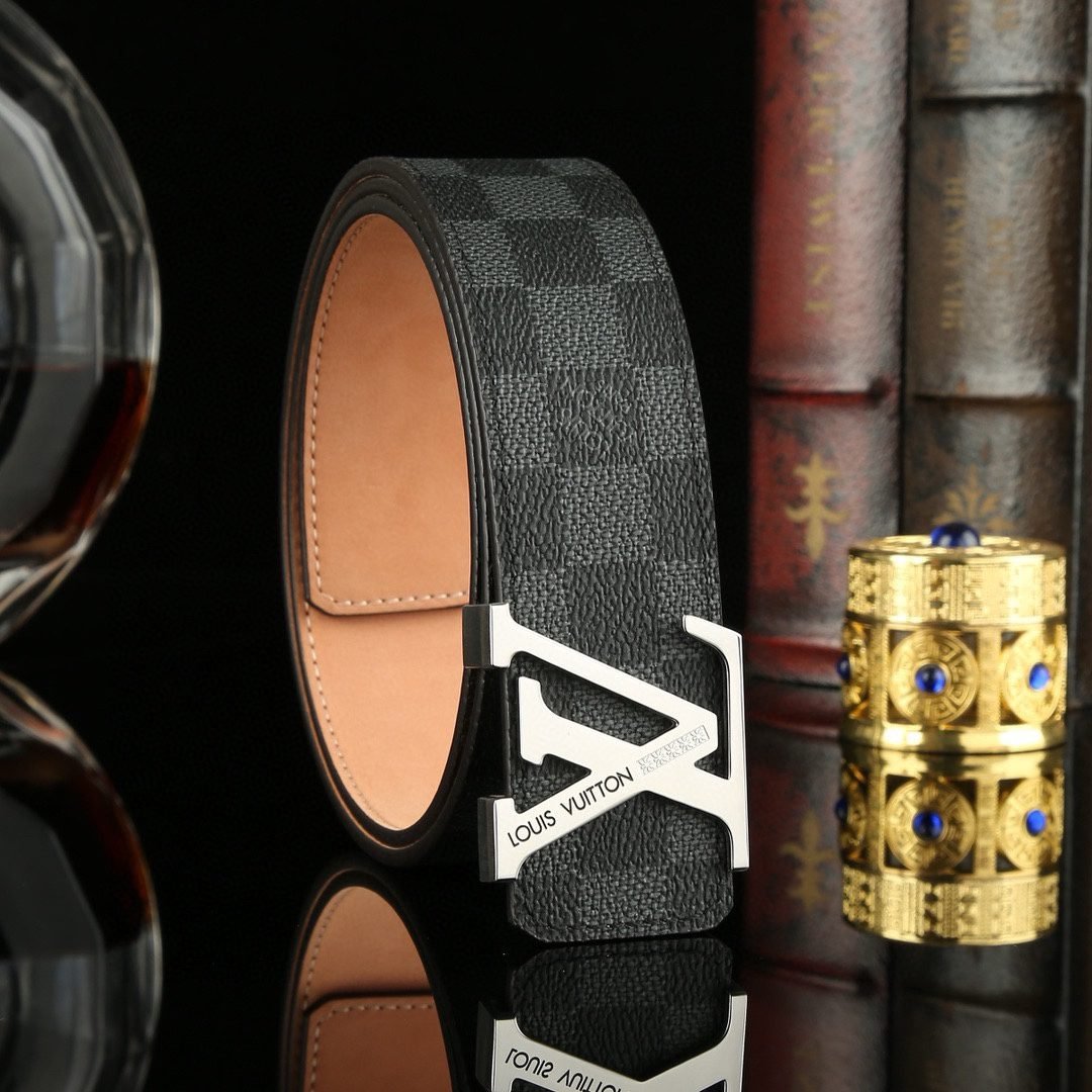 This Louis Vuitton V-buckle black textured belt is made of high-quality leather and has been treated with exquisite craftsmanship to present a deep and elegant black luster. The “LV” logo on the belt uses gold hot stamping technology, which contrasts sharply with the black belt, highlighting the nobility and uniqueness of the brand.