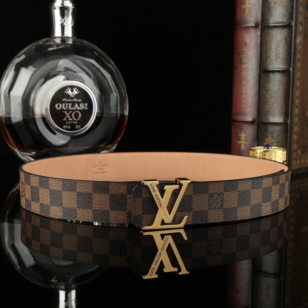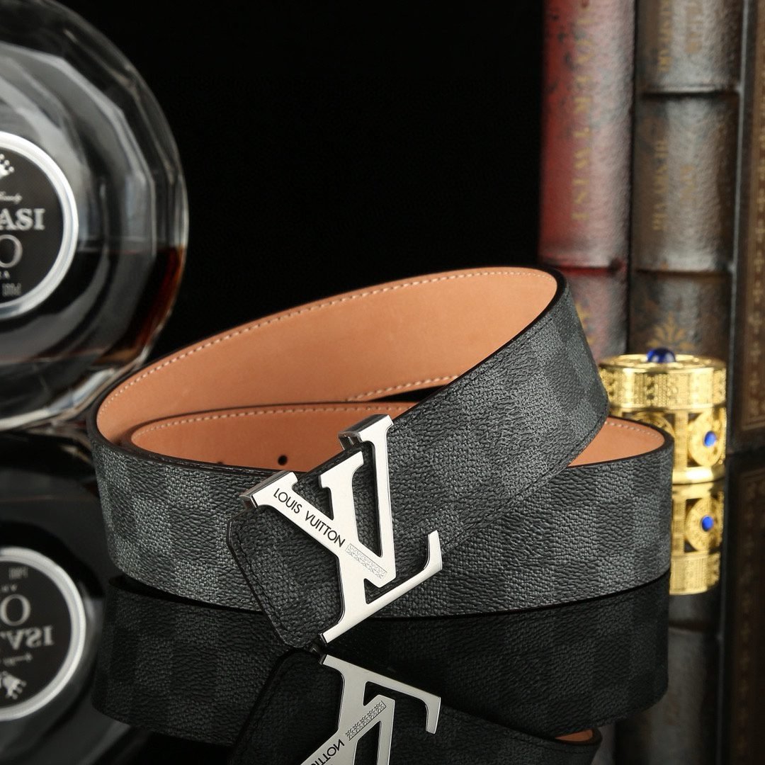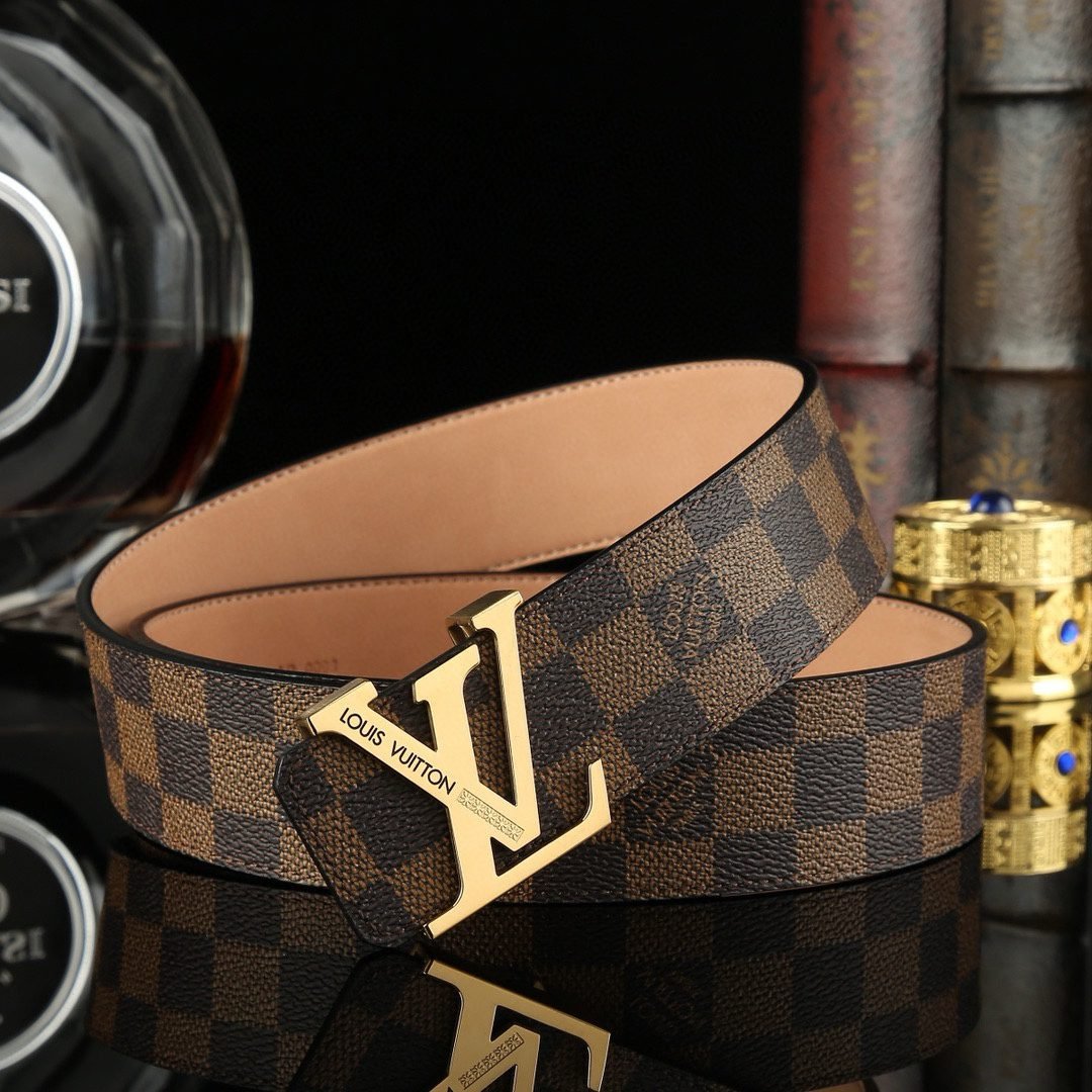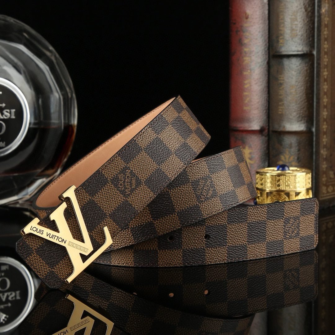 This Louis Vuitton V-buckle black textured belt is made of high-quality leather and has been treated with exquisite craftsmanship to present a deep and elegant black luster. The “LV” logo on the belt uses gold hot stamping technology, which contrasts sharply with the black belt, highlighting the nobility and uniqueness of the brand.