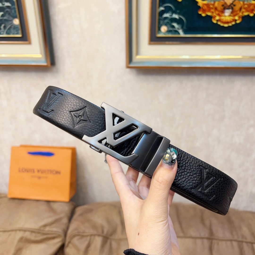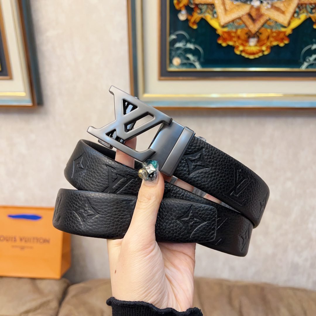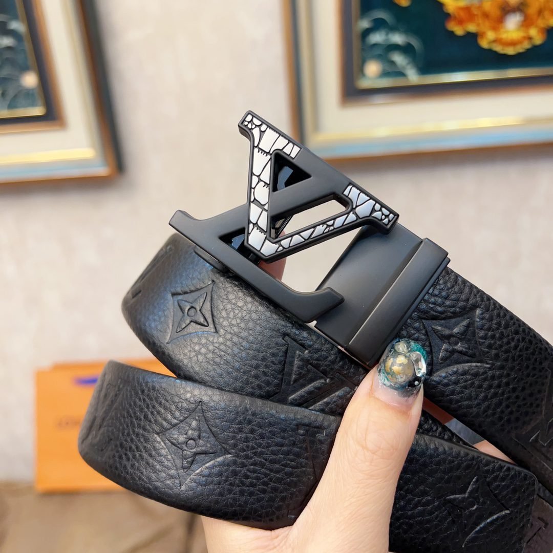 Louis Vuitton’s V-shaped buckle black textured belt interprets the brand’s nobility and luxury with its excellent quality and unique design. Selected top-grade leather material, carefully polished and meticulously processed, the surface of the belt presents a smooth and delicate texture, and it feels soft and comfortable. The classic LV logo is inlaid on the belt buckle with metal decoration, shining brightly and highlighting the wearer’s extraordinary taste and status.