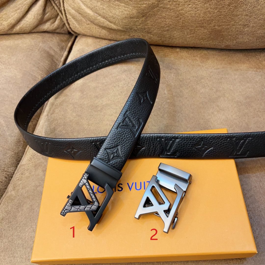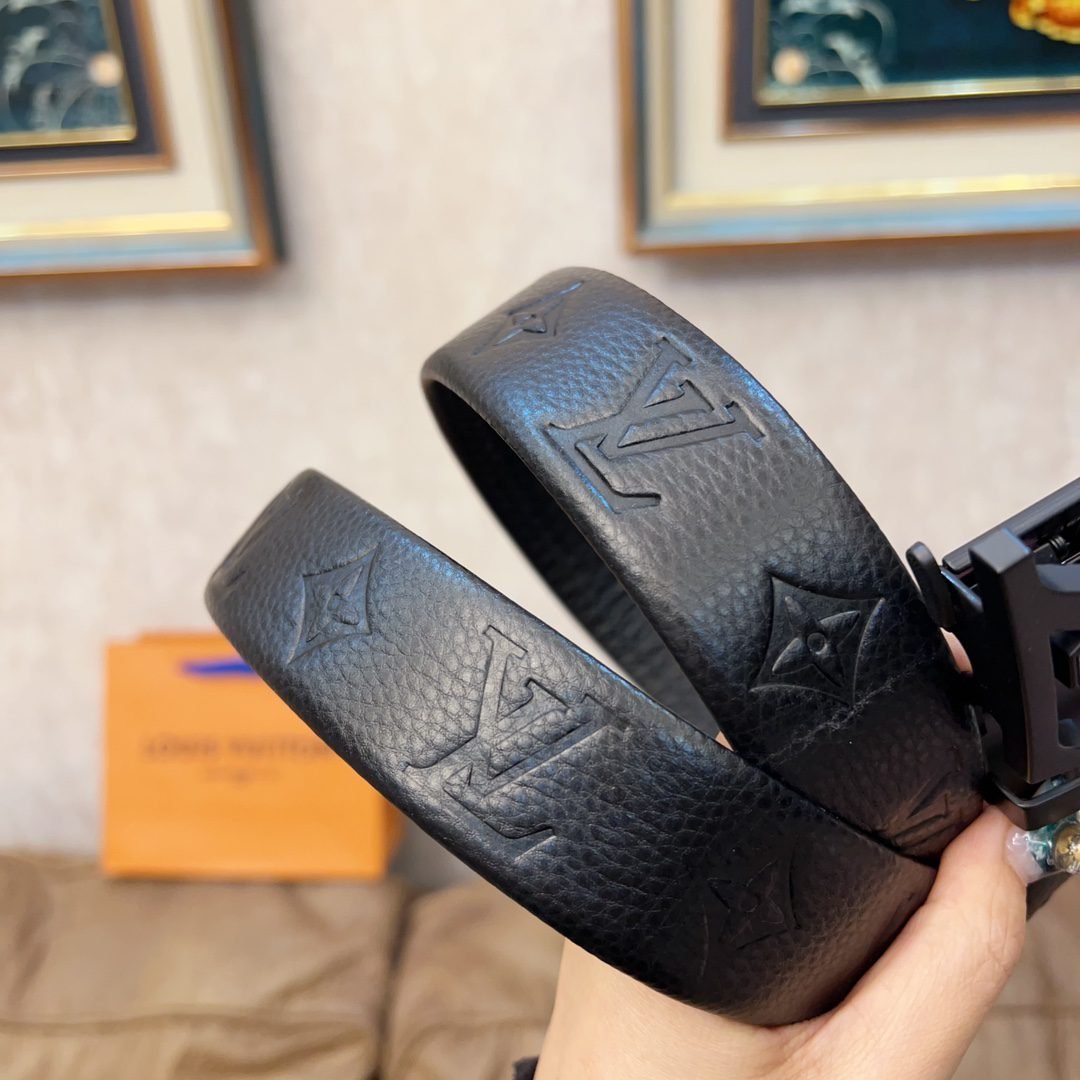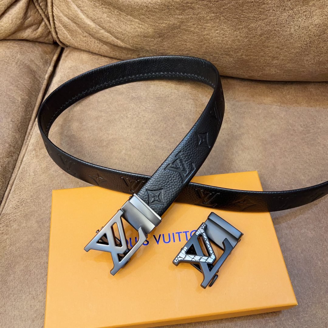 Louis Vuitton’s V-shaped buckle black textured belt interprets the brand’s nobility and luxury with its excellent quality and unique design. Selected top-grade leather material, carefully polished and meticulously processed, the surface of the belt presents a smooth and delicate texture, and it feels soft and comfortable. The classic LV logo is inlaid on the belt buckle with metal decoration, shining brightly and highlighting the wearer’s extraordinary taste and status.