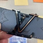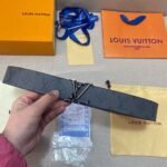 Louis Vuitton’s V-buckle black textured belt interprets the brand’s excellent quality and unique charm with its exquisite craftsmanship and unique design. Made of top-quality black leather, it has been carefully embossed to form a fine texture, bright luster, soft and comfortable to the touch. The belt buckle is inlaid with an eye-catching metal “LV” logo, which is simple yet grand, highlighting the nobility and luxury of the brand.