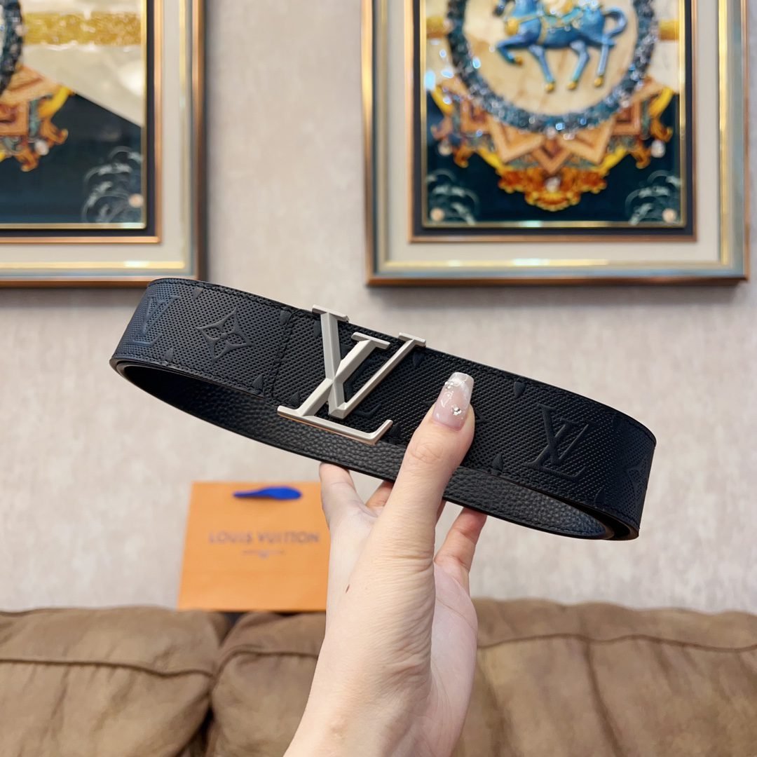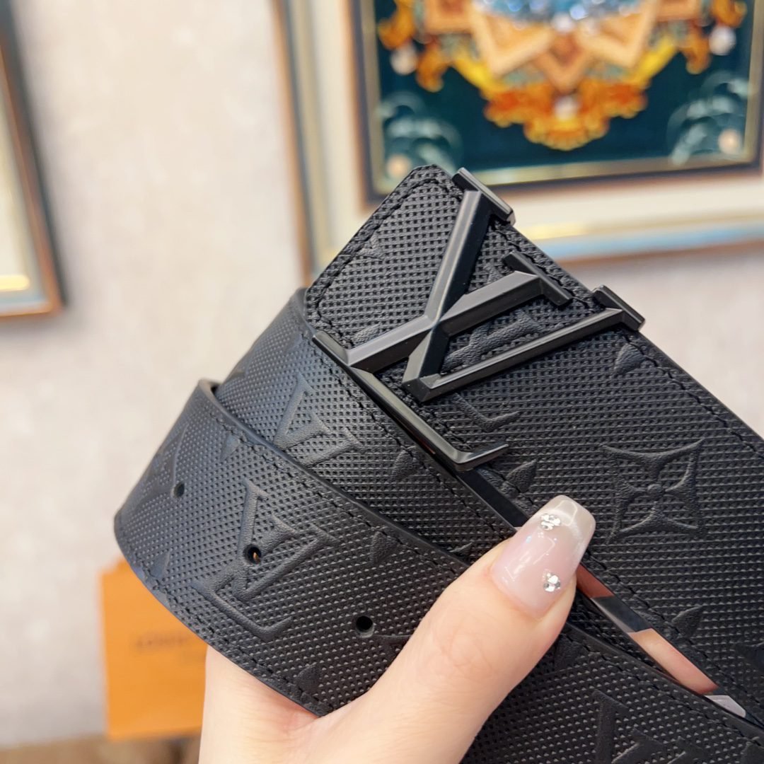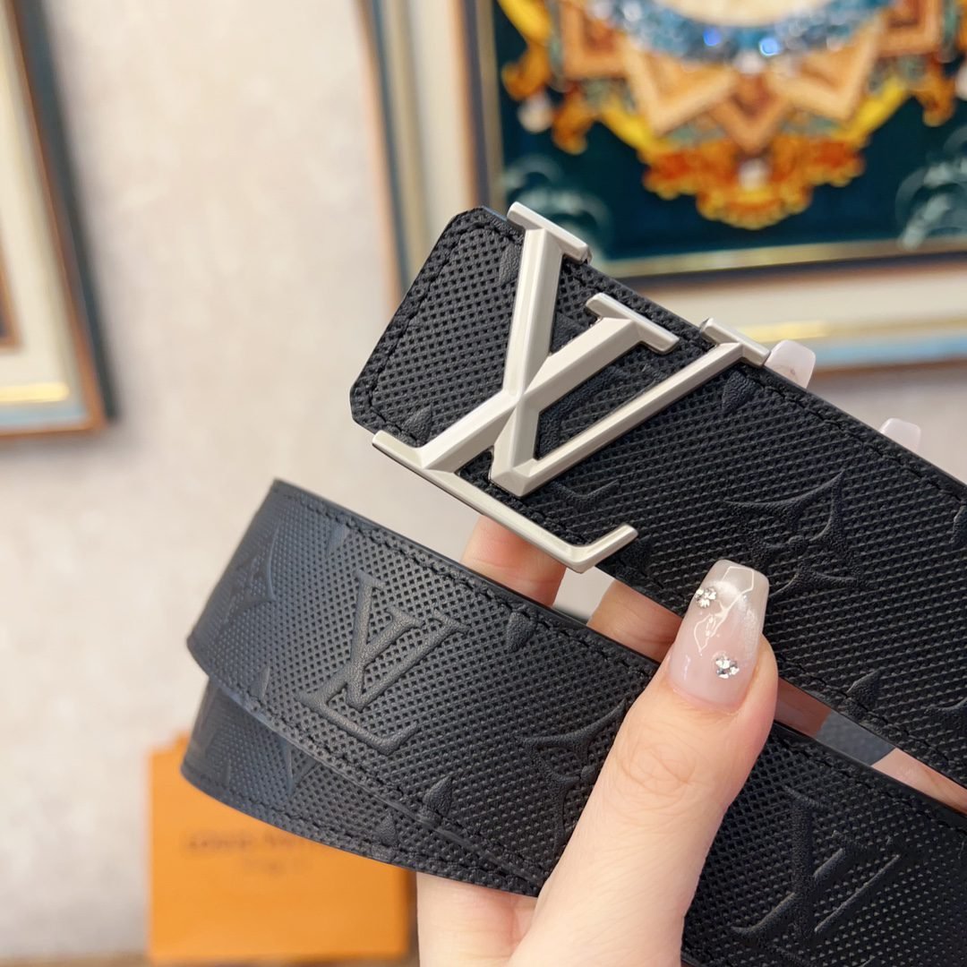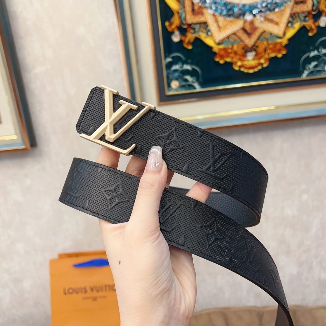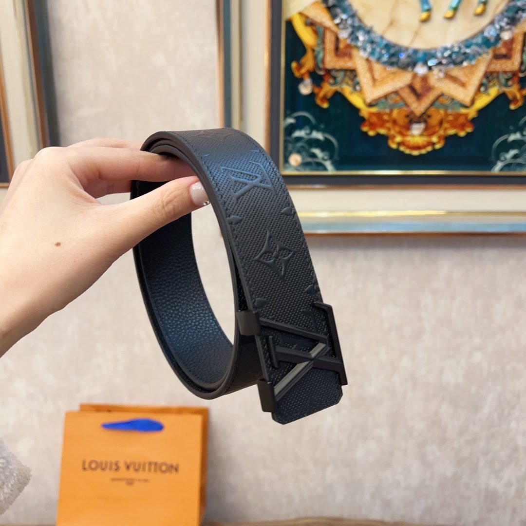Home Belt LV belt Louis Vuitton V-buckle black textured belt, simple and elegant, noble and luxurious