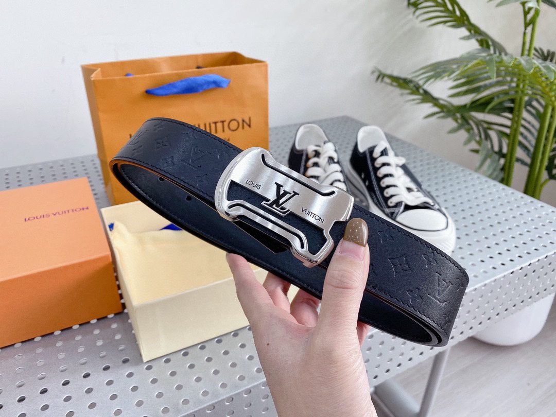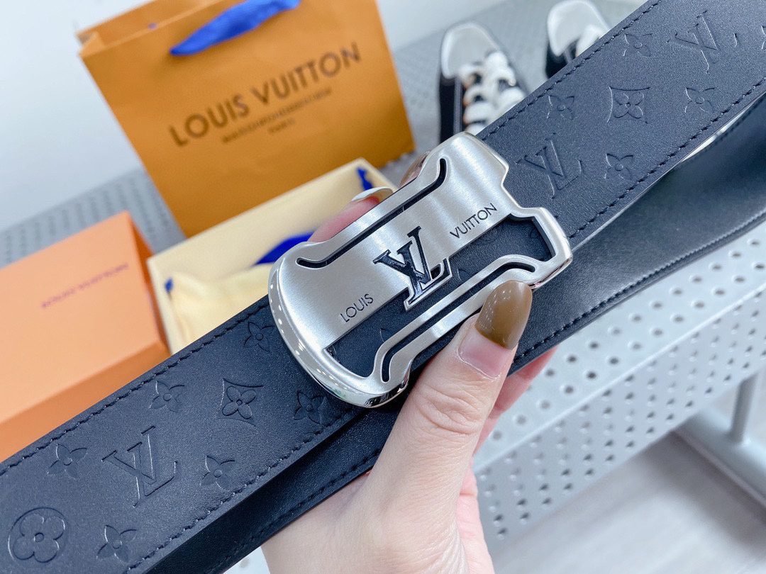 Home Belt LV belt Louis Vuitton V-buckle black textured belt, simple and elegant, refined and elegant