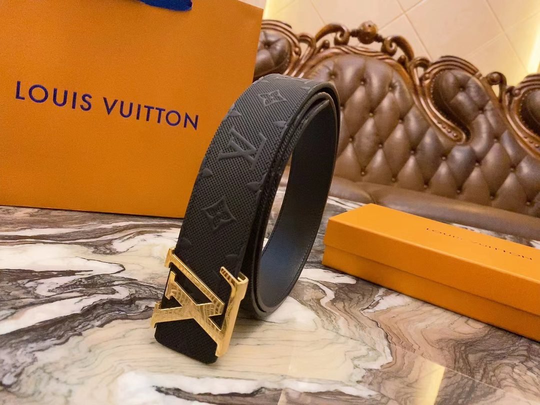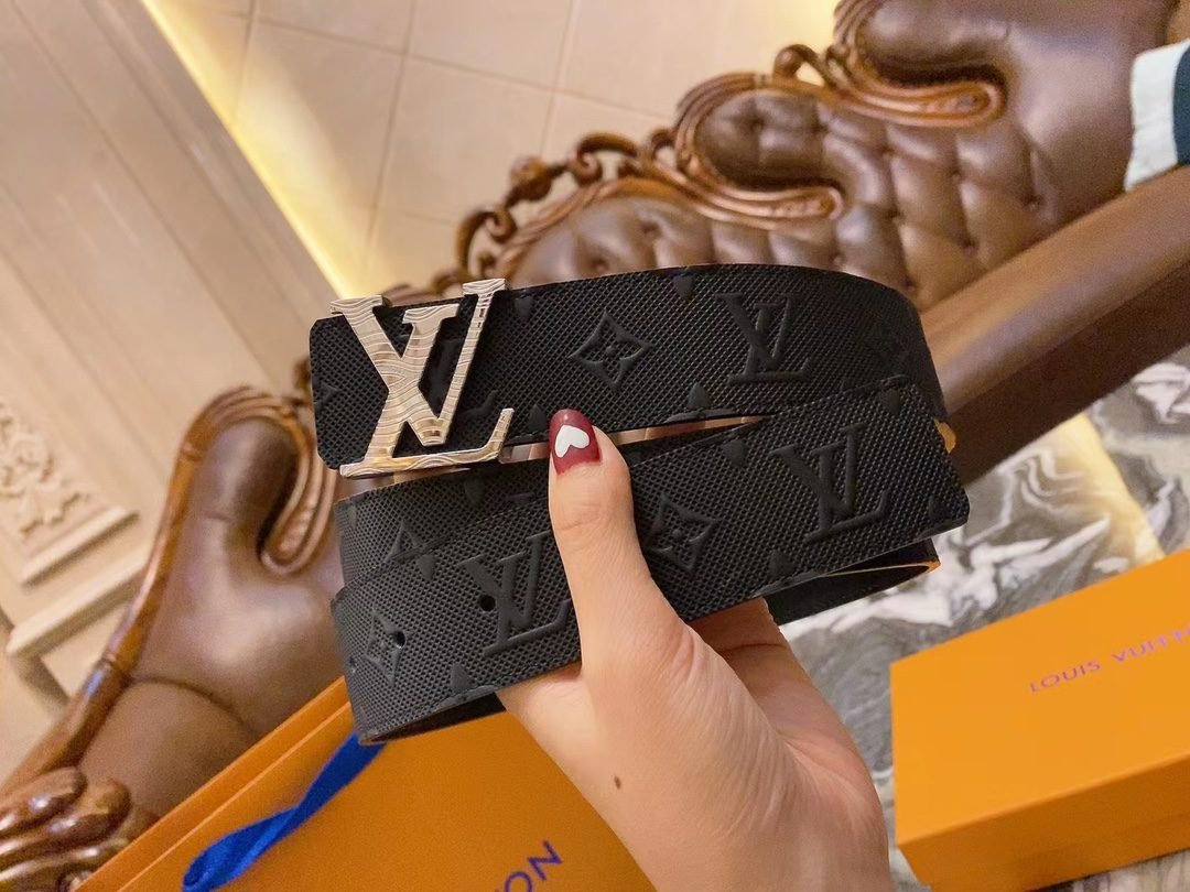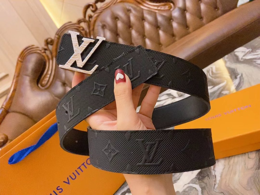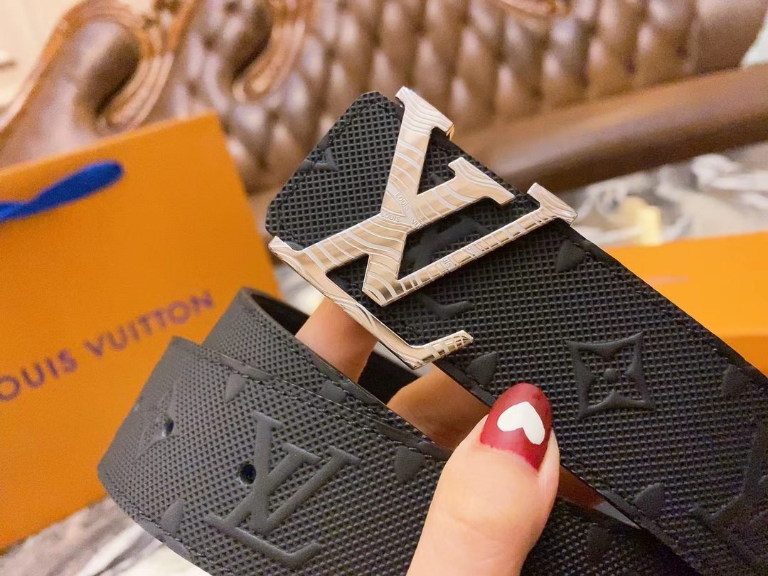 Home Belt LV belt Louis Vuitton V-buckle black textured belt, simple, elegant, low-key and luxurious