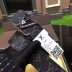 This Louis Vuitton V-shaped buckle black textured belt shows an unparalleled sense of luxury with its classic and unique design. The top-grade black leather material is selected, and the surface is specially treated to present a delicate texture and elegant luster. The belt buckle head is made of metal and is inlaid with the brand’s iconic “LV” pattern, which is shiny and eye-catching.