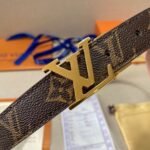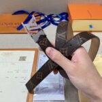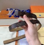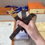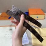 This Louis Vuitton V-buckle brown textured belt stands out for its superior craftsmanship and superb detailing. Made of high-quality brown leather, soft and comfortable to the touch and durable. The belt is inlaid with the iconic metal “LV” logo, showing the brand’s nobility and luxury.