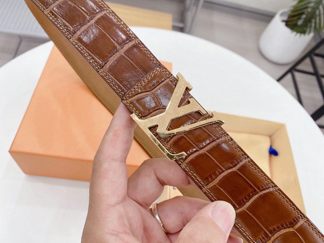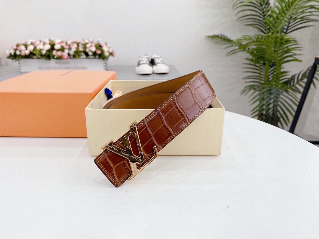 Louis Vuitton’s V-buckle crocodile pattern belt combines exquisite craftsmanship and top-quality materials. Made of top-grade leather material, the leather is fine and soft, with a unique and layered texture. The metal “LV” logo buckle is exquisite and elegant, highlighting the nobility and luxury of the brand.