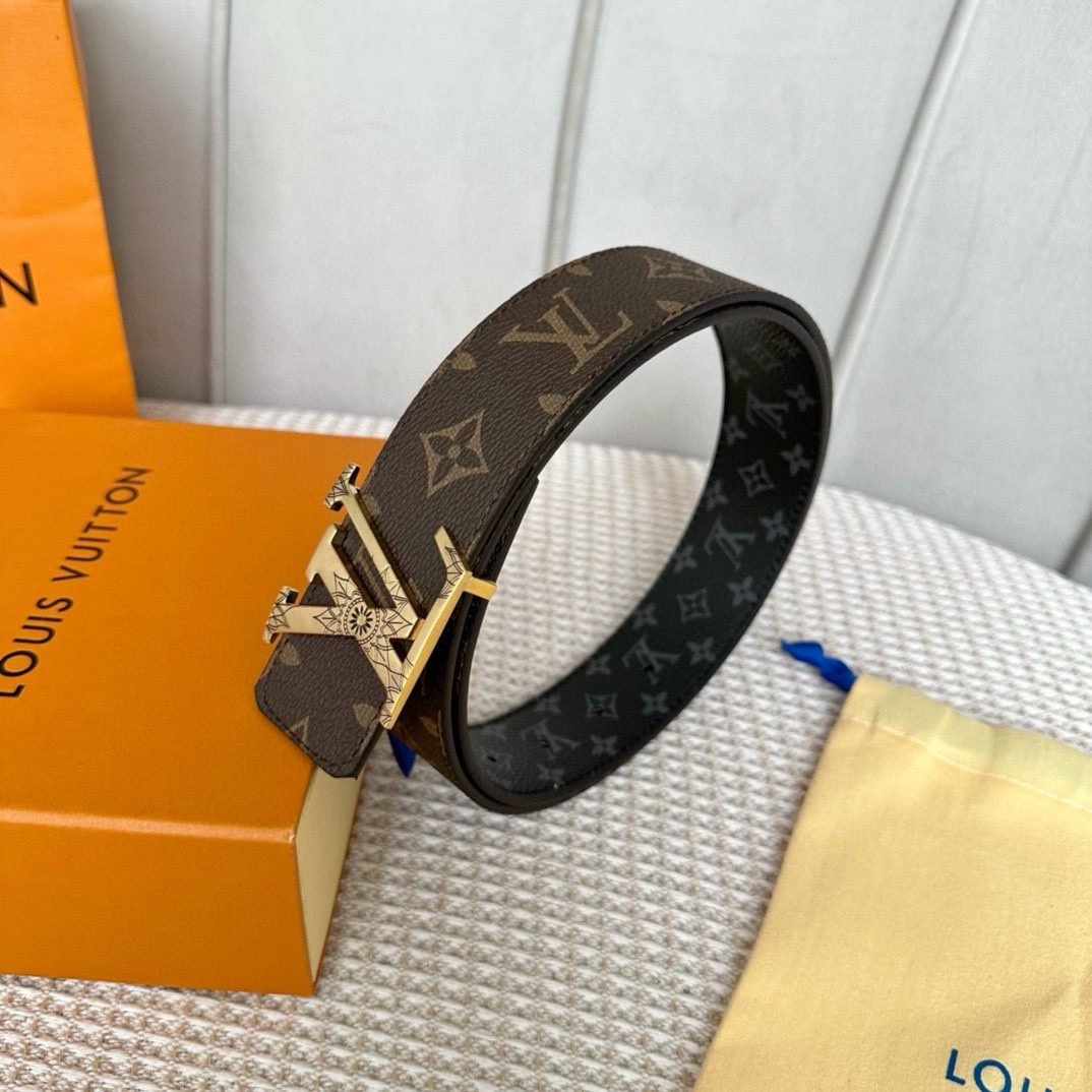 Home Belt LV belt Louis Vuitton V-buckle double-sided belt, high-end, noble and luxurious