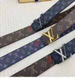 This LOUIS VUITTONV buckle double-sided belt can be used on both sides, showing its unique fashion charm. The belt is made of high-quality leather, which is soft and comfortable to the touch, wear-resistant and durable, and can stand the test of time. The unique design of the large metal V-shaped fastener not only enhances the beauty of the belt, but also demonstrates the brand’s exquisite craftsmanship.
