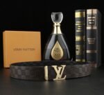 Louis Vuitton’s V-buckle textured belt shows unparalleled charm with its unique design and excellent quality. The belt is made of high-quality leather, which feels soft to the touch, has a deep and shiny color, and displays a low-key luxury style. The belt buckle head is made of metal and is exquisitely engraved with the LV logo, highlighting the brand’s unique charm.