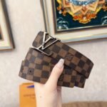 This Louis Vuitton V-buckle textured belt has become the darling of the fashion industry with its unique design style and excellent quality. Full of retro yet fashionable atmosphere. The “LOUIS VUITTON” metal logo on the belt highlights the nobility and uniqueness of the brand. The selected leather material is not only soft and comfortable to the touch, but also ensures wear resistance for long-term use.