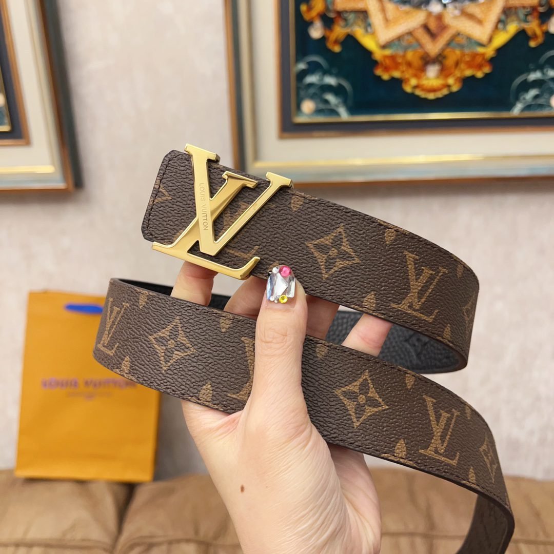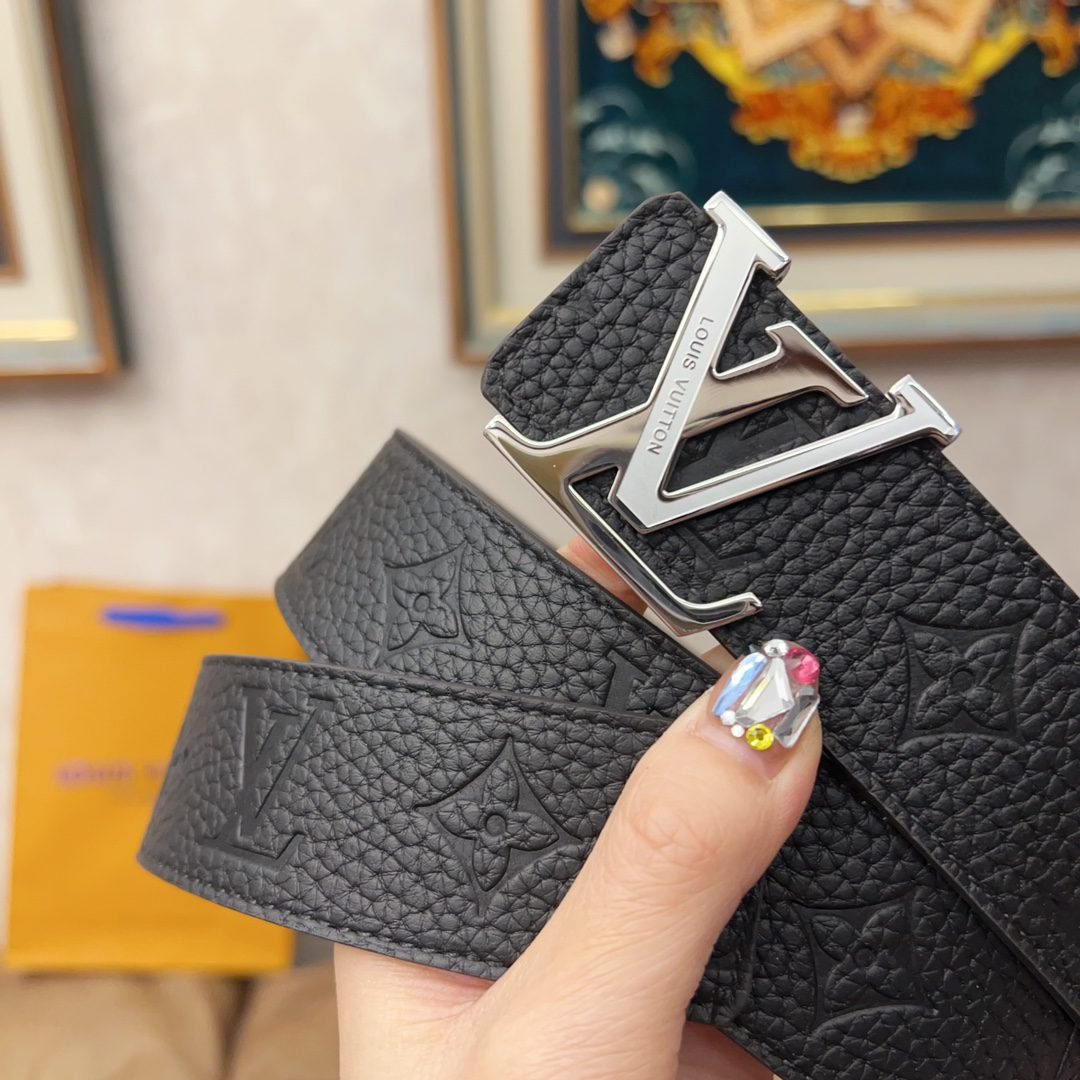 Louis Vuitton’s V-buckle textured belt demonstrates the brand’s unique charm with its unique design and high-quality materials. Selected high-quality leather material, carefully embossed, showing fine texture and texture, soft and elastic to the touch. The metal buckle is engraved with the classic “LV” logo, highlighting the nobility and elegance of the brand.