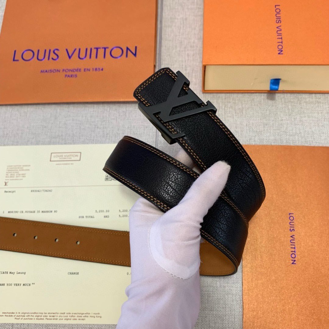 This Louis Vuitton V-buckle black belt, with its unique design and exquisite craftsmanship, demonstrates the brand’s unparalleled nobility and luxury. The belt is made of top-grade leather material, which is soft and delicate to the touch and durable. The “LV” logo fastener is made of exquisite metal with dazzling luster, showing the brand’s ultimate pursuit of details. The belt design is simple yet elegant, suitable for various occasions.