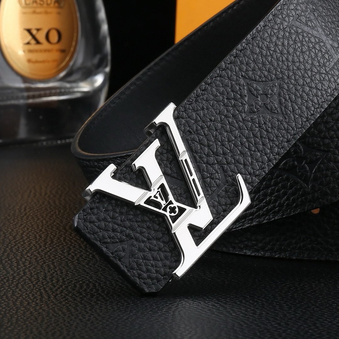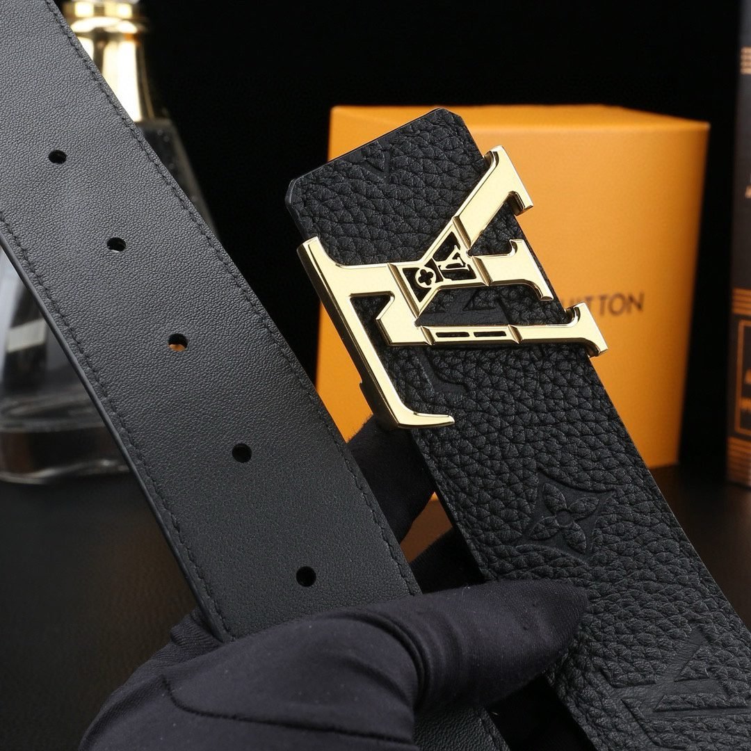 Louis Vuitton’s V-buckle black textured belt perfectly blends elegance and luxury. Selected high-quality leather material, finely polished and treated with unique techniques, showing unique texture and luster, soft and delicate touch, highlighting extraordinary texture. The belt buckle head is made of high-grade metal material and is exquisitely inlaid with Louis Vuitton’s iconic “LV” letters. The golden luster shines brightly, showing the wearer’s noble taste and unique personality.