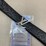 Louis Vuitton’s V-shaped buckle black textured belt shows an unparalleled sense of quality with its luxurious leather material and exquisite craftsmanship. The surface of the belt is delicate and smooth, and the leather texture is clearly visible, revealing a low-key and luxurious atmosphere. The metal “LV” logo buckle is embellished with it, shining brightly and highlighting the unique charm of the brand.