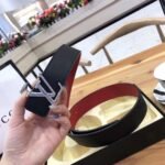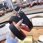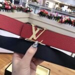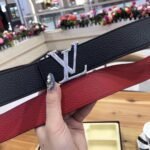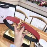 This Louis Vuitton V-buckle double-sided belt cleverly combines bright red with elegant black, blooming with unparalleled charm. Selected top-grade leather material and carefully crafted by craftsmen, showing a smooth and delicate touch while having excellent durability. The metal LV logo on the belt buckle is simple yet noble, highlighting the wearer’s unique taste and extraordinary identity. The belt can be used on both sides.