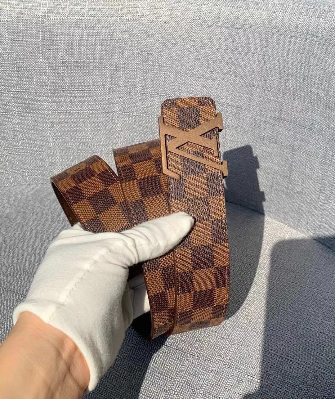 Louis Vuitton’s brown V-buckle brown and black plaid belt shows the unique charm of the Louis Vuitton brand with its unique plaid design and exquisite craftsmanship. This belt is made of high-quality leather that feels soft and delicate while still being durable. The interweaving of brown and black creates a calm yet dynamic sense of fashion, and the classic LV gold logo highlights the wearer’s unique taste and personality.