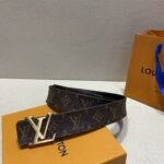 Louis Vuitton’s classic LV buckle texture belt and exquisite metal buckle highlight unparalleled luxury and taste. Selected top-grade leather material and treated with exquisite craftsmanship, the surface shows a delicate luster and soft touch. The metal buckle takes the brand’s iconic “LV” lettering as the core of the design, with simple and smooth lines, showing a classic yet fashionable charm.
